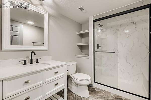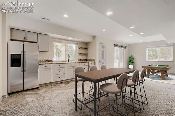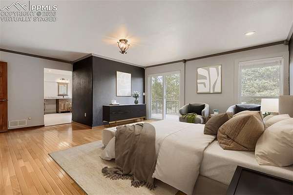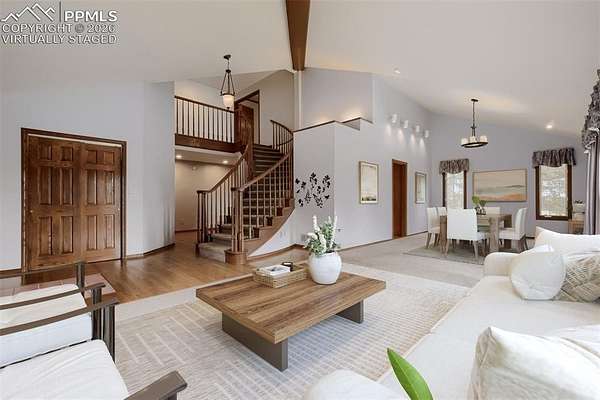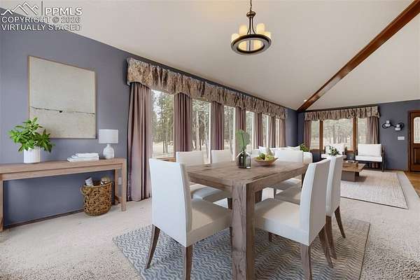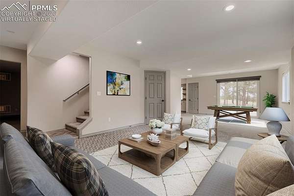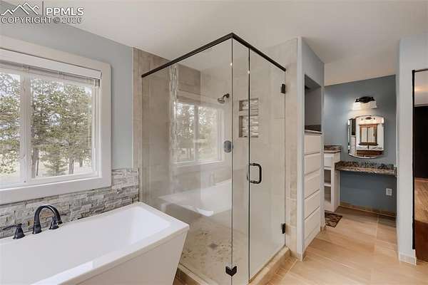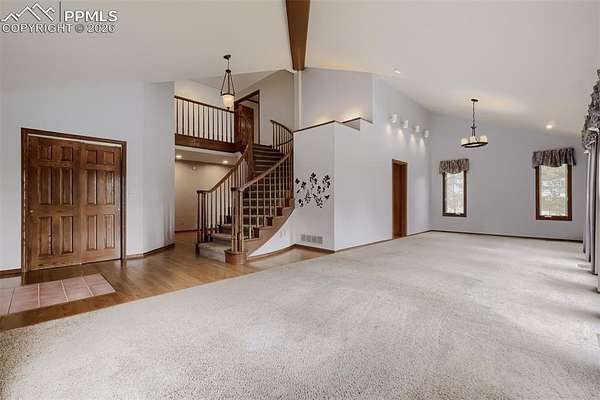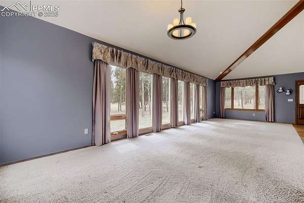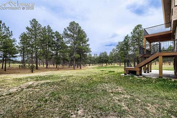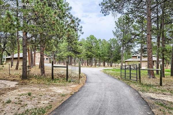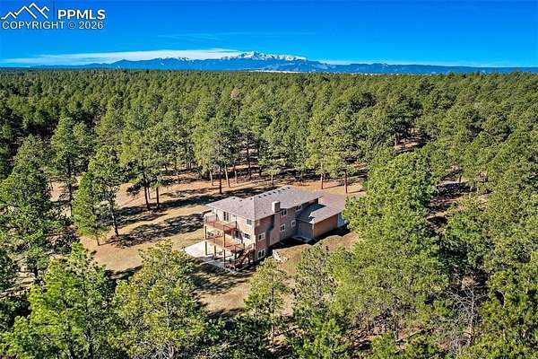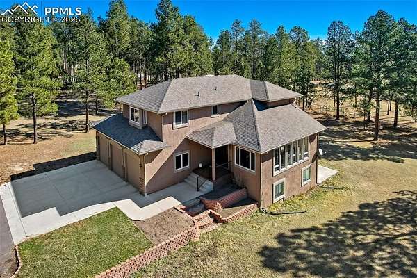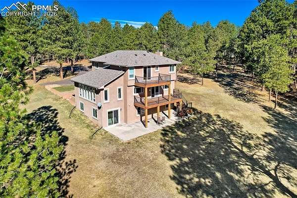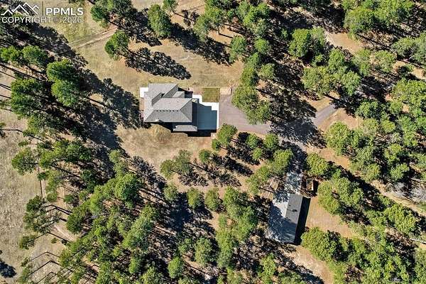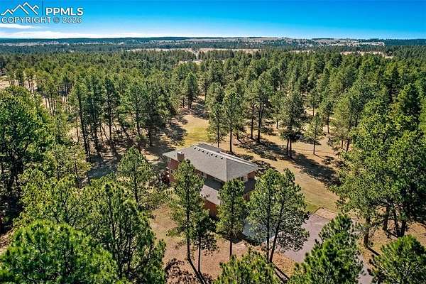 Stately stucco two story located on an unheard of 23.8 treed and meadowed acres in northern Black Forest. Amazing park like setting of tall, mature ponderosas, fully mitigated firewise that still lets the sun come in with some sunny meadowed areas. All paved roads and paved driveway curls its way to this 5 bedroom, four bath home with a dedicated office and additional "flex" room for your workouts, crafting, or additional office. Also featuring a 30x60 stucco, finished/heated shop which has a 14x15 finished room with 3/4 bath plus another 13x16 dedicated room for woodworking/paint booth/misc. Still plenty of room to easily park approx 6 vehicles/RV (8ft door) No HOA/minimal covenants, easy sailing to Hwy 83/!-25 or Springs and in Liews Palmer Schools. As you enter the home, there is lovely formal sitting area with a dining area combination all of which look through a wall of gorgeous wood windows letting nature in. The kitchen has lots of cabinets and work spaces and overlooks the main level family room with gas fireplace. This walks out to a composite deck with supreme privacy and lots of deer & wildlife. Completing the main level is a nice office space and a large laundry room and then onto an oversized, finished three car garage. The circular staircase leads to the hard to find 4 upper bedrooms, all with true hardwood, both bathrooms totally remodeled and the 4th bedroom large enough for another entertainment area. The primary is a true retreat w/ private balcony and vanity area. The walkout basement finish is newer with an entertainment space, 2nd kitchen, additional bedroom + bath plus the flex room. Also included is a second laundry hook up.Zoned for horses, there is riding at the Pineries, Section 16, Woodlake Trails, Homestead, and Black Forest Regional Park. Shopping and restaurants are only 10 minutes to Falcon or 10 minutes to the Baptist corridor. Golfing is also about 10 minutes away. Also included is an extremely generous well appropriations. Enjoy!