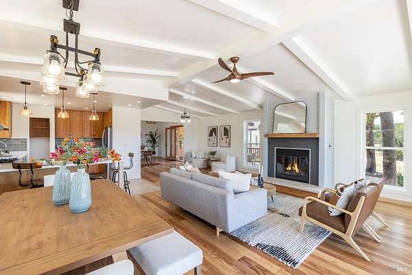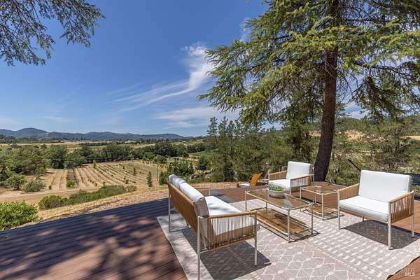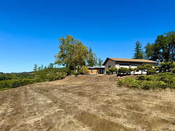 Nestled atop the gentle rolling hills of Healdsburg, this home has sweeping views of the world-renowned Dry Creek Valley and within 10 mins of the downtown area. Expansive windows throughout echo the natural splendor of the landscape with vistas of the lush valley beyond, while ensuring each room is illuminated by abundant natural light. This tasteful newly updated home creates a sanctuary of comfort and casual elegance set by the tone of the natural beauty that surrounds this residence. Moving through the home the large open concept living area is accented by Fir wood floors, contemporary fireplace, vaulted ceiling & dining area. The inviting kitchen features quartz countertops, breakfast bar, maple cabinetry, and new appliances. Three bedrooms (two with ensuite bathrooms), 3 bathrooms total. The multiple glass doors throughout the home invite you to step out and relax on the large wooden decks or enjoy the gentle 5.29 usable acres surrounding the home, where many possibilities await; horses, agriculture, livestock, and ADU. Oversized three car detached garage.