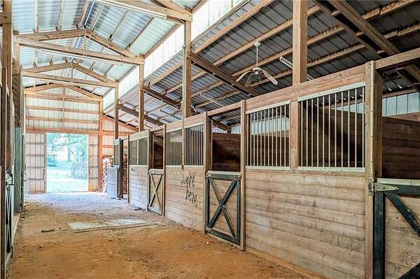 Welcome to the land of possibilities with historic charm and horse facilities! Step back in time and envision the possibilities at this historic 1945 home nestled on 7 beautiful acres in the heart of Austell. This property is a rare find, offering road frontage for convenience, a peaceful rural setting, and easy access to I-20 and I-285, placing you just minutes from shopping, dining, and everyday necessities. Bring your imagination. This diamond in the rough is waiting to be transformed into something truly special. Inside, you'll find a living room with a cozy fireplace leading to a formal dining room, kitchen, and laundry area. The main level offers two bedrooms and one bathroom. Upstairs, two bonus rooms provide flexible options for additional living space. The finished basement, previously used for a small business, features both interior and exterior access and is ideal for a home office, workshop, or as an investment opportunity. A large, preserved barn with six stalls, a wash station, an office, and a hay storage area makes this a dream for equestrian enthusiasts. Two fenced pastures provide ample space for horses or livestock, while a fenced front yard and carport parking add convenience. An additional home on the property can be renovated or removed to suit your vision. With its blend of history, acreage, and endless potential, this Austell property is ideal for those seeking to restore a piece of the past or create a private homestead with room to grow.