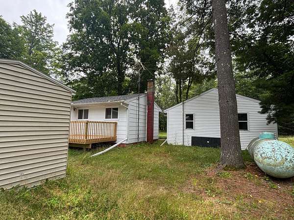 A log bunkhouse and an updated mobile home make up this unique northwoods setup! Electrical, plumbing, carpeting, vinyl plank flooring, insulated 2x4 walls, a new complete bathroom, and a brand-new deck have all been updated in this mobile home! Updates have also been made to the windows, siding, and shingle roof. The log bunkhouse has two bedrooms, an open living room/kitchen area with a water hookup but no bathroom but a functional outhouse, the log bunkhouse might be used as an overflow sleeping space. Close to Archibald Lake, take to the trails for year-round enjoyment and town access! An older septic serves the mobile home, shared sand point well with log bunkhouse.