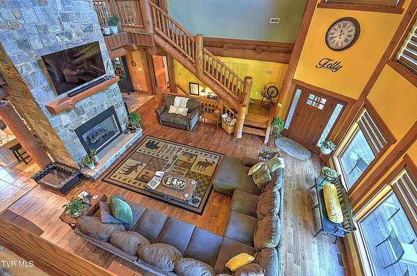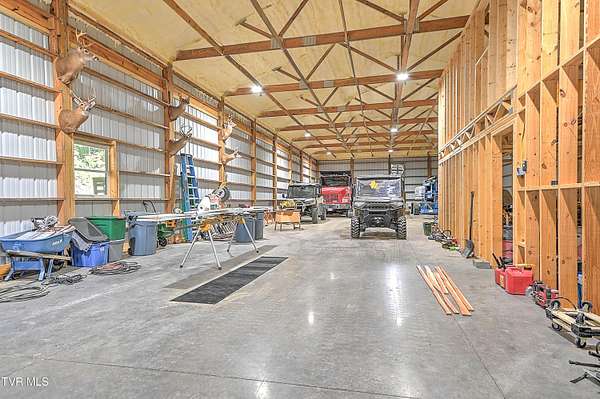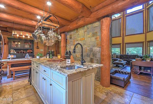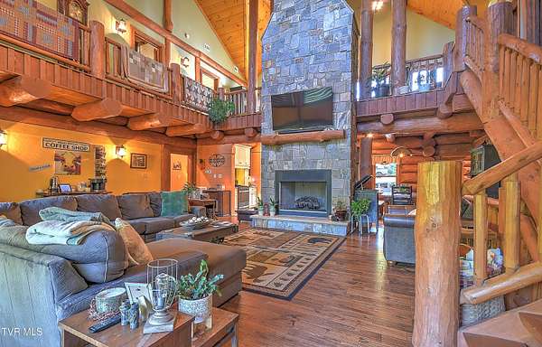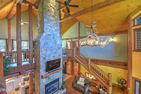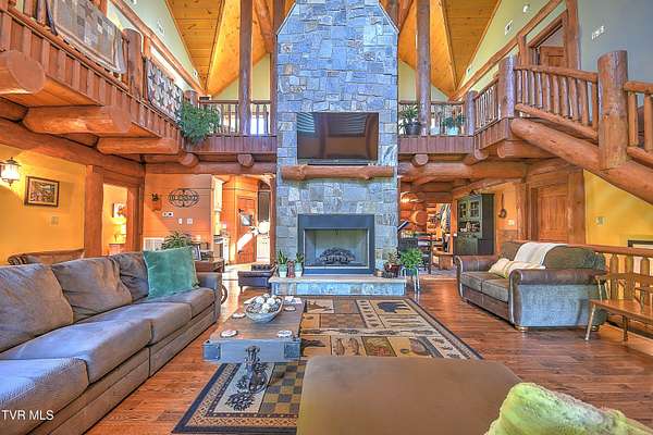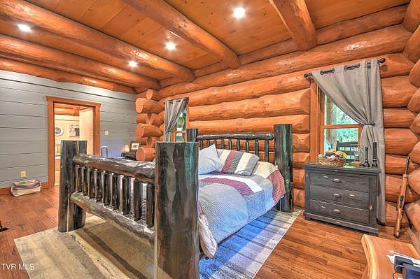 Custom Log Cabin Retreat on 101 Acres with Guest House & Shop. Welcome to your own private mountain escape! This custom-built log cabin offers over 5,000 finished square feet and a total of 6,500 square feet, designed for comfort, entertaining, and everyday living. On the main level, you'll find the primary suite with a walk-in closet and spa-style bath featuring a tiled walk-in shower, custom cabinets with granite countertops. Another bedroom, full bath and laundry room are also on the main floor. The kitchen has custom cabinets with granite countertops and opens to a breathtaking living room with 32-foot ceilings, custom logs, hardwood floors, and a monster fireplace. Upstairs, there are three more bedrooms, along with a full bath and half bath and a loft living room. The basement is made for fun and relaxation with epoxy floors, a theater room, full bath, and a two-car pull-under garage. There is also a secret 10x10 safe room. Outdoor living is where this home really shines. Enjoy the screened-in wraparound porch and outdoor kitchen on the back patio. The property also includes a natural fed creek from one end of the property to the other, sprinkler system, whole house generator, aluminum railings, trex decking and an outdoor wood furnace for supplemental heat. There is plenty of space to relax or entertain. Additional highlights include: Guest house on the property with 3 bedrooms and 1 full bath that is 1428 sq ft. Metal roof, heat pump, and an outdoor pavilion. New 40x100 shop with 15' ceilings, two 12-foot lean-tos, spray foam ceiling, and its plumbed for bathroom, kitchen, shower, and laundry all on 101 acres of peace, privacy, and room to roam. This property brings together rustic charm, modern features, and wide-open space-including miles of hiking and ATV trails - perfect as a family retreat, hunting property, or private getaway. This home and property truly has way too many details to list them all - it's a must see.