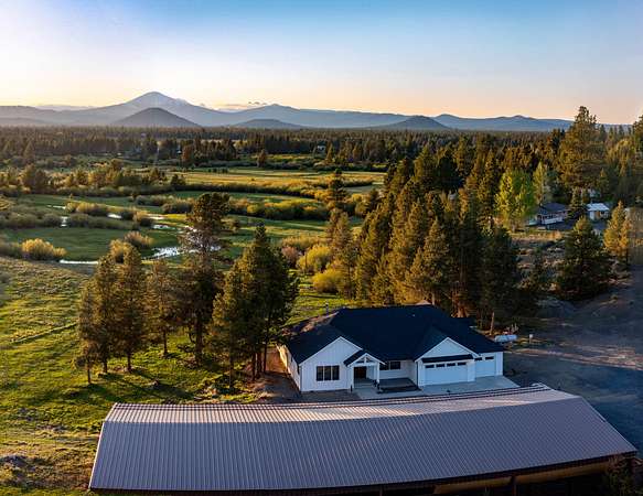 Stunning 10-acre horse property with panoramic Cascade Mountain views and 564' of river frontage. New custom-built 2,941 sq ft home features 4 bedrooms and 4 baths, vaulted ceilings, floor-to-ceiling stone fireplace. Gourmet kitchen is equipped with custom walnut cabinets, quartz countertops, professional-grade propane appliances. The primary suite offers a walk-in shower, dual shower heads, rainhead, smart bidet, coffee/tea station, and a built-in fireproof safe in the closet. Smart home features throughout. Additional highlights include a walk-in pantry, mudroom, and zoned heating separating the main living quarters from the guest suite. The Guest Suite has separate entrance, bedroom, bath, kitchenette, living room, and laundry area. Comfort is ensured with a whole-home automatic backup generator. 7,200 sq ft Red Iron Barn includes a 60x90 riding arena,30x60 enclosed area for stables, tack room, or convert into a shop. Experience the proximity to Central Oregon recreation.