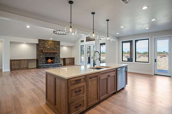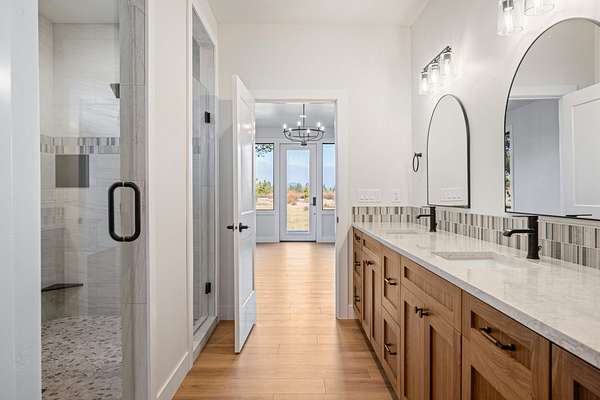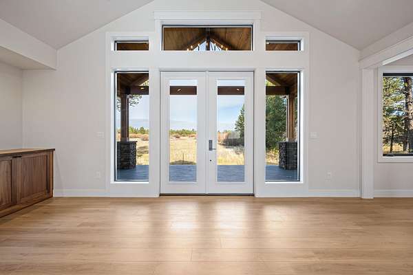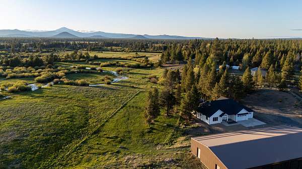 Barely lived in, 10-acre horse property with panoramic Cascade Mountain views and 564' of river frontage. Newer custom-built 2,941 sq ft home features 4 bedrooms and 4 baths, vaulted ceilings, floor-to-ceiling stone fireplace. Gourmet kitchen is equipped with custom walnut cabinets, quartz countertops, professional-grade propane appliances. The primary suite offers a walk-in shower, dual shower heads, rainhead, smart bidet, coffee/tea station, and a built-in fireproof safe in the closet. Smart home features throughout. Additional highlights include a walk-in pantry, mudroom, and zoned heating separating the main living quarters from the guest suite. The Guest Suite has separate entrance, bedroom, bath, kitchenette, living room, and laundry area. Comfort is ensured with a whole-home automatic backup generator. 7,200 sq ft Red Iron Barn includes a 60x90 riding arena,30x60 enclosed area for stables, tack room, or convert into a shop. Experience the proximity to Central Oregon recreation