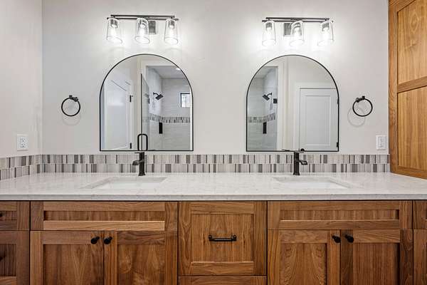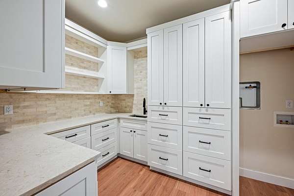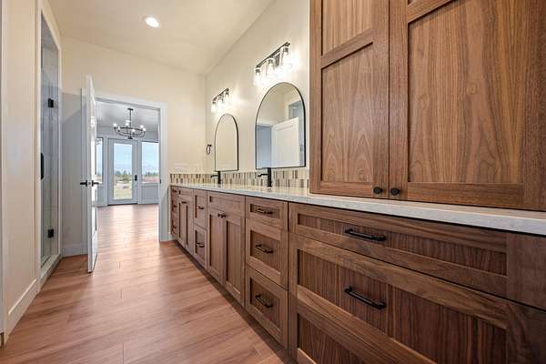 - Bidet, Breakfast Bar, Built-In Features, Double Vanity, Dual Flush Toilet(s), Enclosed Toilet(s), In-Law Floorplan, Kitchen Island, Linen Closet, Open Floorplan, Pantry, Primary Downstairs, Shower/Tub Combo, Smart Light(s), Smart Thermostat, Soaking Tub, Solid Surface Counters, Tile Shower, Vaulted Ceiling(s), Walk-In Closet(s), Water Sense Fixture(s), Wet Bar