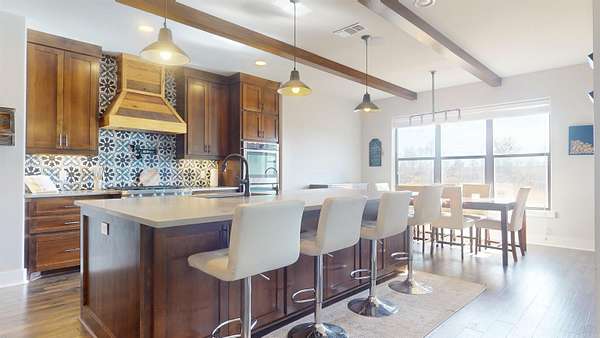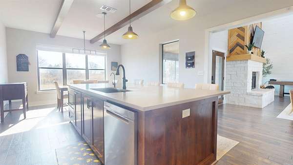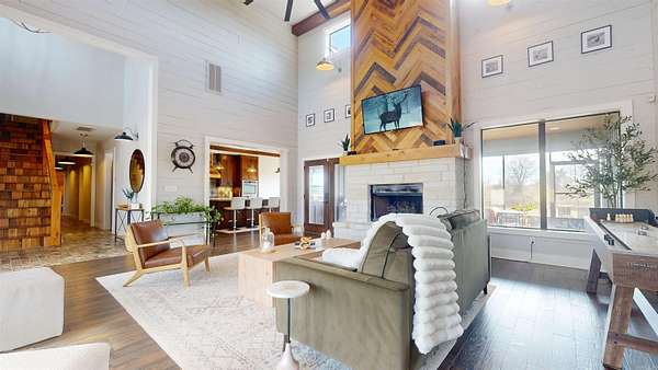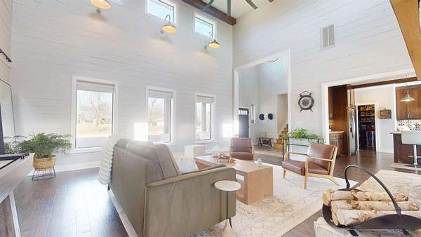 Set on 2.41 acres in Pleasant Grove, this 4 bedroom/4.5 bath home offers privacy, space & flexible living near schools, shopping & commute routes. Large windows fill the living area with natural light, anchored by a gas fireplace, while the enclosed sunroom features a wood-burning fireplace for cozy evenings. The spacious kitchen includes quartz countertops, a large island & bar, breakfast area, 9-burner gas range, double ovens & a walk-in pantry with mini fridge. The primary suite is a private retreat with two large walk-in closets with built-ins, a safe room, separate vanities, soaking tub & two-person tile shower. A guest suite provides flexible living or workout space, a bedroom, full bath, and kitchenette with sink, small stove/oven & mini fridge/freezer, ideal for guests or multi-generational living. Additional features include a laundry room with sink & folding space, mudroom with storage & upstairs bonus/game room, plus two bedrooms each with a full bath. Parking & storage include a two-car attached garage, extra parking area, and detached garage for equipment or ATVs, plus a heated and cooled bonus room with full bath. A rare blend of comfort, acreage & versatility!