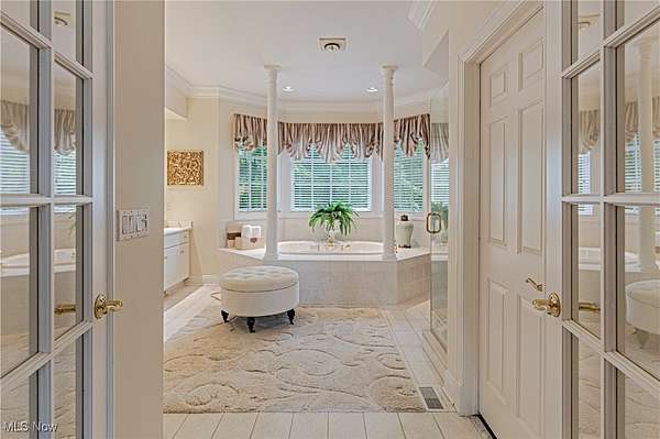 Tucked away at the end of a quiet cul-de-sac, this extraordinary builder's home is a rare fusion of timeless craftsmanship, innovative efficiency, and luxurious comfort. Custom built & impeccably maintained, the residence spans more than 8,500 square feet & sits on 2.66 private, wooded acres. Every detail has been thoughtfully curated, from the solid core doors & elegant crown molding to the radiant natural wood floors and heated 4-car garage. The updated chef's kitchen shines & flows effortlessly into gracious entertaining spaces, including an inviting family room, formal living and dining rooms and butler's pantry, and a versatile main-floor suite perfect for guests, in-laws, or a private office. Beyond its beauty, this home is a masterclass in healthy, efficient living. It features hospital-grade air filtration and UV purification systems, a 7-zone high-efficiency HVAC system, and a comprehensive water treatment setup including iron filtration, softening, and pH balancing. Energy-conscious buyers will appreciate the R-21 rated 2*6 exterior walls, R-38 attic insulation, and Marvin low-E argon-filled windows. A generator with automatic transfer switch ensures year-round peace of mind. At the same time, advanced security & data systems-including CAT 5 wiring and an 8-camera surveillance system-offer exceptional connectivity and control. The walkout lower level transforms into an entertainer's dream and wellness retreat with a full secondary kitchen, expansive recreation space, a dedicated gym with sauna, and a full bath. Step outside to your resort, where a heated saltwater pool with automatic cover promises summer after summer of low-maintenance enjoyment. A new Raypak 336,000 BTU heater was installed in 2024, and a 2024 roof with a 50-year transferable warranty offers durability & peace of mind for decades to come. Surrounded by nature yet close to every convenience, this home is a rare & compelling offering-equal parts sanctuary, showplace, and smart investment.