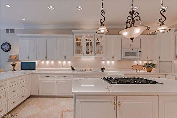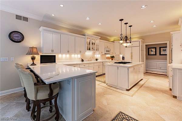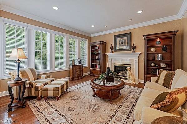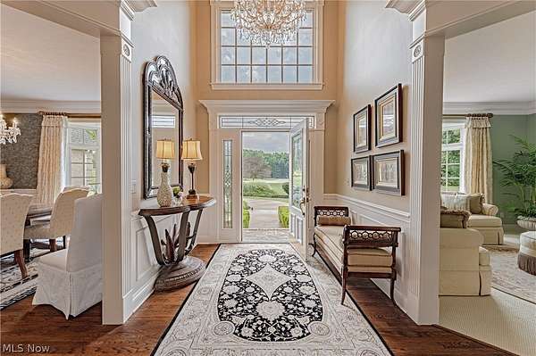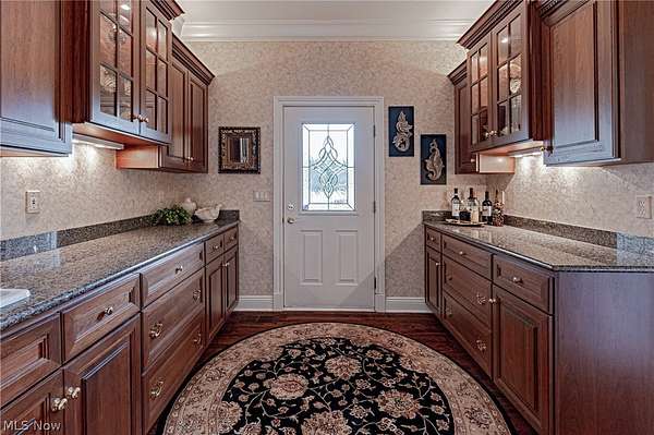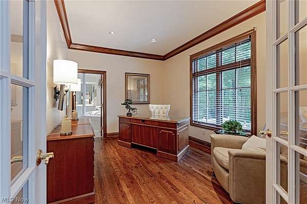 Tucked away at the end of a quiet cul-de-sac, this extraordinary builder's home is a rare fusion of timeless craftsmanship, innovative efficiency, and luxurious comfort. Custom built & impeccably maintained, the residence spans more than 8,500 square feet & sits on 2.66 private, wooded acres. Every detail has been thoughtfully curated, from the solid core doors & elegant crown molding to the radiant natural wood floors and heated 4-car garage. The updated chef's kitchen shines & flows effortlessly into gracious entertaining spaces, including an inviting family room, formal living and dining rooms and butler's pantry, and a versatile main-floor suite perfect for guests, in-laws, or a private office. Beyond its beauty, this home is a masterclass in healthy, efficient living. It features high-grade air filtration and UV purification systems, a 7-zone high-efficiency HVAC system, and a comprehensive water treatment setup including iron filtration, softening, and pH balancing. Energy-conscious buyers will appreciate the R-21 rated 2*6 exterior walls, R-38 attic insulation, and Marvin low-E argon-filled windows. A generator with automatic transfer switch ensures year-round peace of mind. At the same time, advanced security & data systems-including CAT 5 wiring and an 8-camera surveillance system-offer exceptional connectivity and control. The walkout lower-level transforms into an entertainer's dream and wellness retreat with a full secondary kitchen, expansive recreation space, a dedicated gym with sauna, and a full bath. Step outside to your resort, where a heated saltwater pool with automatic cover promises summer after summer of low-maintenance enjoyment. A new Raypak 336,000 BTU heater was installed in 2024, and a 2024 roof with a 50-year transferable warranty offers durability & peace of mind for decades to come. Surrounded by nature yet close to every convenience, this home is a rare & compelling offering-equal parts sanctuary, showplace, and smart investment.