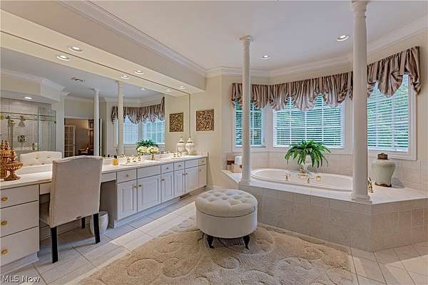 - Built In Features, Cedar Closets, Ceiling Fans, Central Vacuum, Chandelier, Crown Molding, Double Vanity, Eat In Kitchen, Entrance Foyer, High Ceilings, High Speed Internet, In Law Floorplan, Kitchen Island, Open Floorplan, Primary Downstairs, Recessed Lighting, Sauna, Smart Thermostat, Soaking Tub, Stone Counters, Vaulted Ceilings