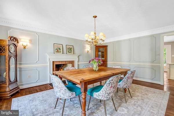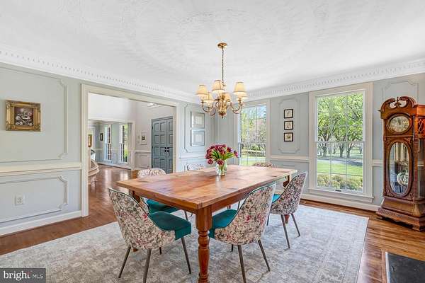 - Chair Railings, Crown Moldings, Curved Staircase, Dining Area, Family Room Off Kitchen, Island Kitchen, Primary Bath(s), Traditional Floor Plan, Wood Floors