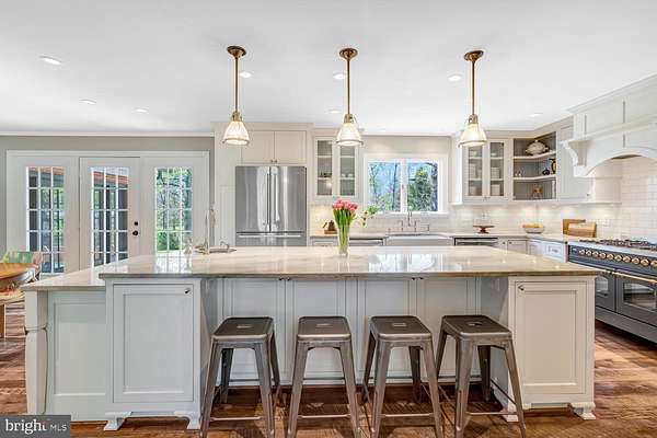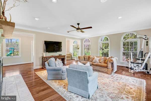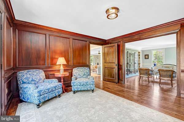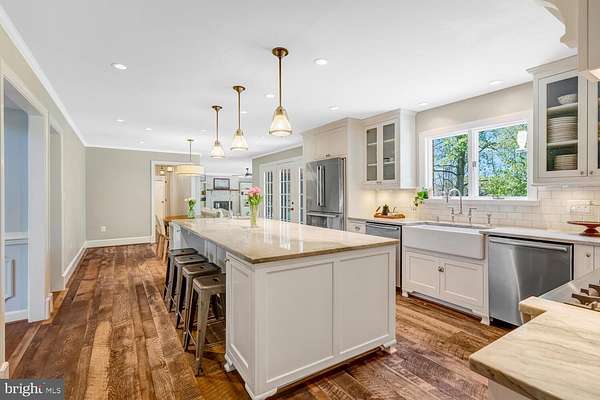 Nestled on 11 scenic acres in a lush Virginia valley, this traditional Georgian estate offers exceptional privacy, timeless elegance, and peaceful countryside views, all with modern conveniences just minutes away. Set well off the road, a long, tree-lined driveway leads to a classic circular drive and stately front entrance. Enter through gorgeous double doors into a spacious main level featuring stunning hardwood floors, multiple family rooms, a formal dining room, and a spectacular back patio designed for effortless indoor-outdoor living. The updated gourmet kitchen is finished in a warm farmhouse style, blending charm and functionality. With an expansive 9-foot island, custom inlaid cabinetry, quartzite countertops, and reclaimed hardwood floors, this space is as beautiful as it is practical. Upstairs, the expansive layout includes five bedrooms, three full bathrooms, attic access, and a formal den. The primary suite offers a thoughtfully designed, beautifully renovated bathroom. The upper second level features an additional bedroom with an en-suite bath, along with an adjacent room that could serve as a library or office. In addition to the 6-bedroom, 5-bath main residence, the property features a 3-stall barn complete with water and electricity. A sport court for pickleball or basketball and a private pond further enhance the property's exceptional appeal. This remarkable estate is a rare opportunity to enjoy refined country living in an extraordinary setting. Welcome home to Thunder Road!