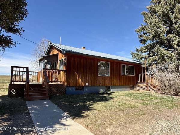 Est $16,931/moSpanning 560+/- acres of unencumbered land at 6,600' elevation, this Rio Blanco County property features cultivated wheat fields, 3.17 CFS irrigation water rights with stock ponds, well water, and abundant farm storage and workshop, as well as a barn and grain silos. Two residences on the property include a remodeled 3BD/2BA log sided house surrounded by mature trees, as well as a comfortable 3BD/2BA second home with a full basement. Located 7 miles east of Meeker, enjoy peaceful and unobstructed views of Little Beaver Valley and the Flat Tops Wilderness.