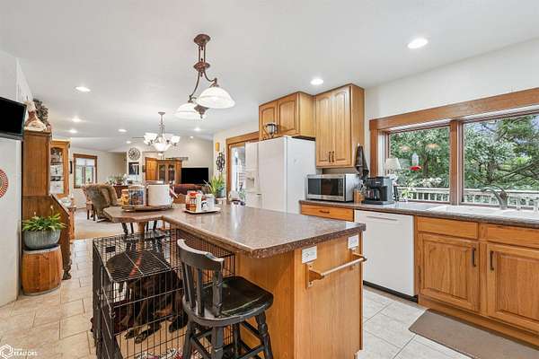 HOME, SHOP AND RECREATIONAL LAND FOR SALE! Welcome to this spacious and well-designed home nestled on approximately 105 acres of prime hunting ground in the quiet community of Letts, Iowa. This property offers a rare combination of comfortable living and outdoor opportunity, with ample space for food plots, hunting sanctuaries, and year-round recreation like mushroom hunting, ATV riding, turkey hunting, hiking & waterfowl hunting. The home features an attached two-car garage with ample storage, custom kitchen cabinetry, and a cozy living room with vaulted ceilings that opens to a large walk-out deck-perfect for entertaining or enjoying the scenic views. The main level includes two bedrooms, including a generous primary suite with a large walk-in closet, dual vanity, whirlpool tub, and a private water closet. Downstairs, the walk-out basement is framed and ready to finish, already equipped with a conforming bedroom, full bathroom, and cabinetry that conveys with the home. Mechanical highlights include a furnace with humidifier, dual 50-gallon water heaters, and a 200-amp electrical panel with sub-panel. Whether you're looking to expand your living space or enjoy the abundant land for hunting and recreation, this property is full of potential.