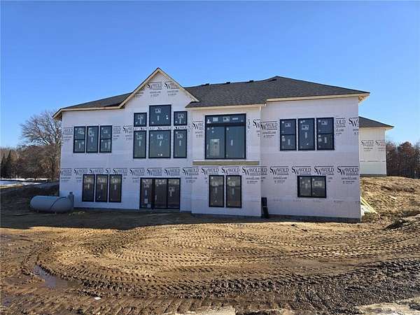 Beautiful Custom Rambler model under construction in a hot new acreage development in Andover School district!! This custom home offers a spacious open concept floorplan with over 4200 finished sq ft and features 10' main ceilings with an inverted vault family room. Gorgeous clear Alder & enameled cabinets throughout. Bright and airy with tons of oversized windows, white enameled trim, shiplap trimmed electric fireplace that accents the main living area. Luxury awaits in the primary bedroom with box vault and private vaulted mstr bath with ceramic tile walk-in shower with glass walls, 6' freestanding soaking tub and double sink vanity. Two additional BRs on the main and a full main bath. This home boasts a fully finished walkout lower level with Wet Bar/Kitchenette with a huge center island with seating area for entertaining and a full fireplace, entertainment center, a large Flex room and a guest bedroom. Some additional features include upgraded gourmet appliances throughout, granite countertops, ceramic tile, covered concrete front porch, huge 14x30 walkout patio, and an oversized 1266 sq ft 4 car heated garage. Many floor plans and options to choose from. Other acreage lots to choose from. EXCLUSIVE BUILDER.