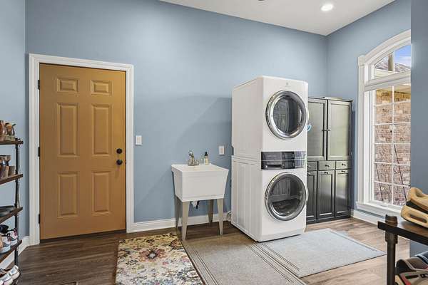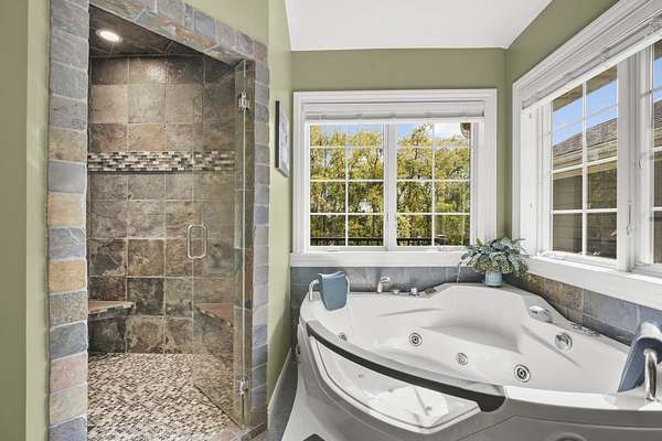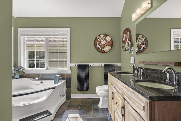 - Air Exchanger, All Window Coverings, At Least 1 Tub, Bar-Refrigerator, Beamed Ceiling(s), Carbon Monoxide Detector, Ceiling Fan(s), Dryer, Foyer Entry, Jetted Bathtub, Primary Bath, Satellite/Dish Internet, Smoke Detector, Vaulted Ceiling, Walk-In Closet(s), Water Softener Inc, Wet Bar, Wood or Sim. Wood Floor