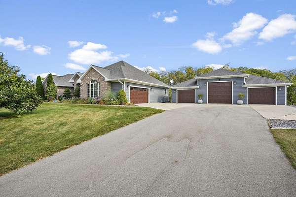The ultimate heated shop and dream garage setup—paired with a 5,000+ square foot home you won’t want to leave! Exceptional 6-bedroom, 3-bathroom home on nearly 4 acres in a peaceful rural subdivision just outside of Mineral Point. Offering over 5,000 square feet, this property features an updated kitchen with granite countertops and high-end Thermador appliances, plus a fully finished lower level with a second full kitchen—ideal for multi-generational living or in-law suite potential. Rare heated and cooled 5+ car detached garage/shop with car lift and epoxy flooring—perfect for car enthusiasts, collectors, hobbyists, or home-based business use. An attached 2-car garage with in-floor heat adds convenience. Enjoy scenic views, a quiet setting, nearby golf, and easy access to Madison. A rare opportunity offering space, flexibility, and functionality.