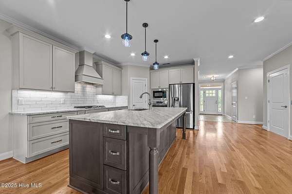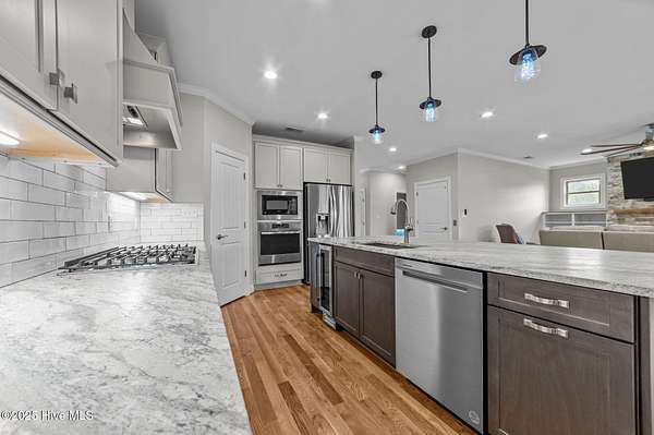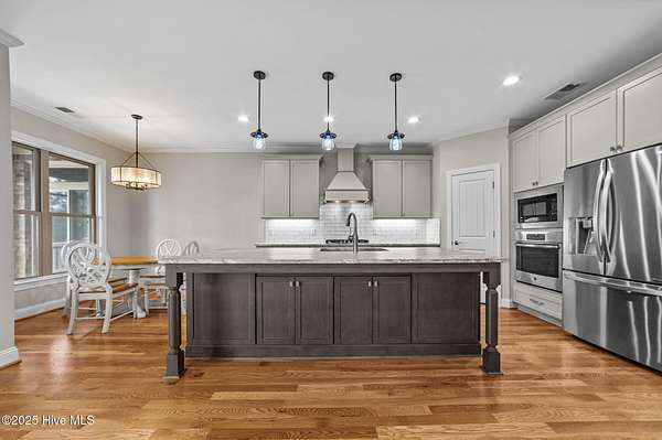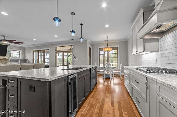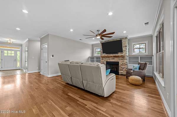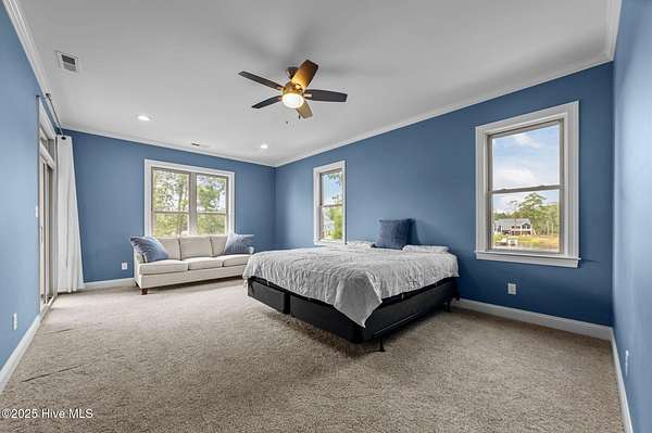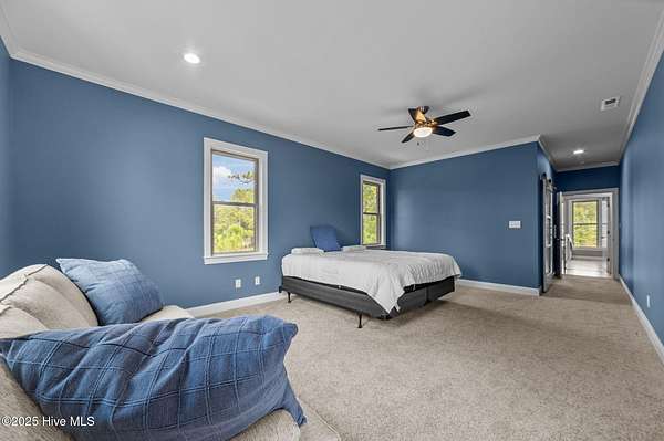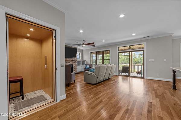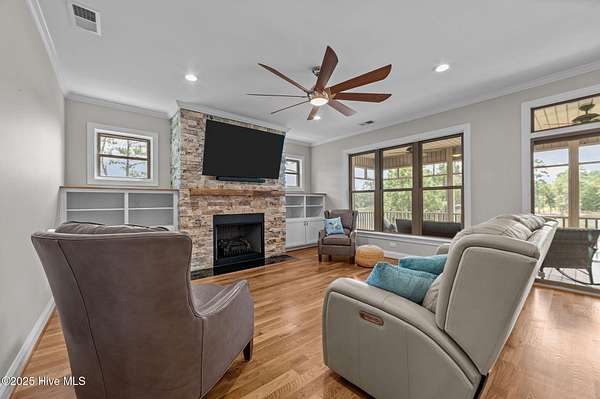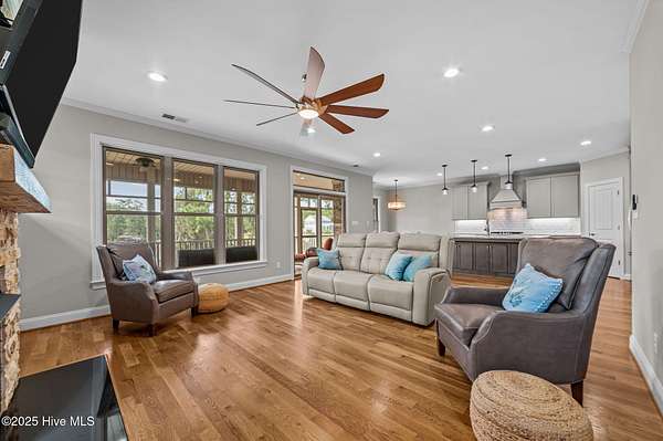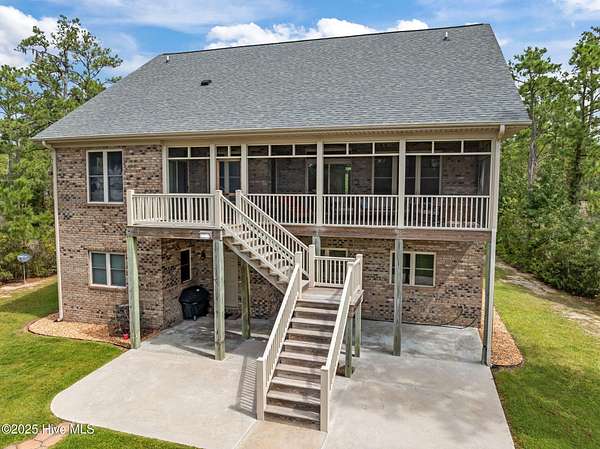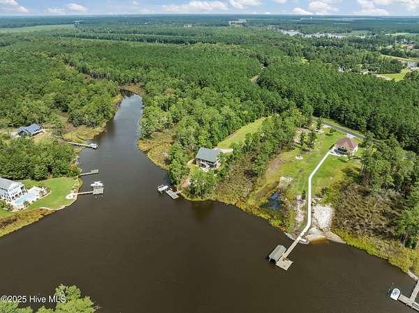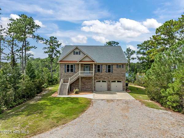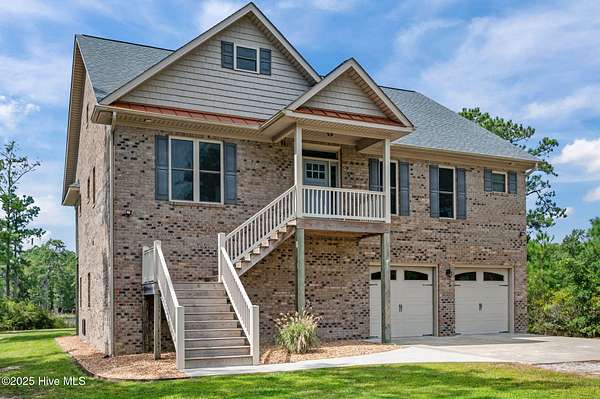 This stunning, custom all-brick waterfront home sits on two expansive waterfront lots totaling over 4 acres in the desirable Carolina Shores community near Bath, NC. Perfectly situated on a deep, protected creek just off the Pamlico River, this elegant yet inviting 3-story home offers privacy, space, and quality craftsmanship inside and out. Built in 2018 and meticulously maintained, the home still feels brand new. The exterior features a private pier, a covered patio ideal for outdoor entertaining, classic copper flashing, a double garage, and a Generac whole-house generator for peace of mind. Step inside to discover a thoughtfully designed interior with a 3-story elevator, rich wood flooring in main living areas, leathered granite countertops, striking stone fireplace flanked by custom built-ins, high-end tile work, walk-in stone shower in the primary suite, a wine cooler and living room, dining room and bedroom furnishings! Most cabinetry features soft-close drawers and pull-outs for added convenience and luxury. The finished lower level-not included in the heated sq. ft.-offers incredible bonus space including a large great room with built-ins and TV, a workout area, flexible office or storage space, and a half bath. A covered patio extends from this level, creating the perfect setup for oyster roasts or weekend cookouts. The oversized 2-car garage comfortably fits two vehicles, and the elevator services all levels, including the walk-in attic. One of the home's most cherished features is the expansive screened back porch that stretches across the rear of the home-an ideal place to enjoy sunrise coffee or evening sunsets over the water. The 2.13 acre waterfront lot next door offers privacy or an opportunity to build another home. Rarely do properties like this come with over 4 acres of waterfront property-a truly unique offering that combines comfort, luxury, and room to grow. Don't miss the opportunity to own this exceptional waterfront retreat.