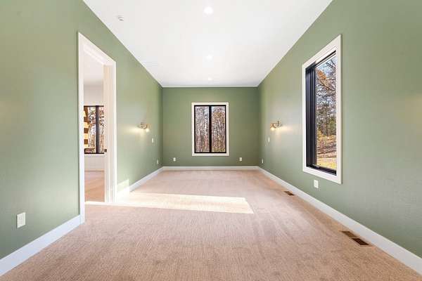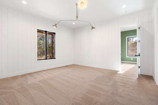 The lower level expands the living space with a large family room, two additional bedrooms, a full bath, a dedicated workout room, a wine room, and a secure safe room tucked beneath the deck.