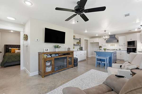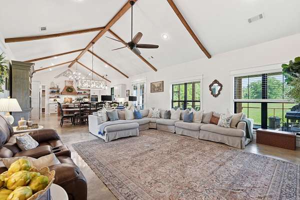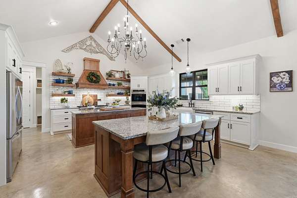 Wow, this custom-built property in desirable Wooster is a stunner! Featuring a main home offering 4 bedrooms and 2 bathrooms. The heart of the home is an expansive open-concept living, dining, and kitchen area spanning over 1,000 sq ft, highlighted by a cozy fireplace and vaulted ceilings. The kitchen is designed to impress with dual islands, granite countertops, and a large walk-in pantry. A separate guest house provides excellent flexibility with 1 bedroom, 1 bathroom, a safe room, and an attached garage—ideal for guests, extended family, or rental potential. Both homes include screened-in porches, tankless water heaters, and individual septic systems. The included 5 acres is ready for country living with plenty of space for horses or livestock, plus a chicken coop. If you’ve been looking for a move-in ready property with room to spread out that you'll never want to leave, this one checks all the boxes.