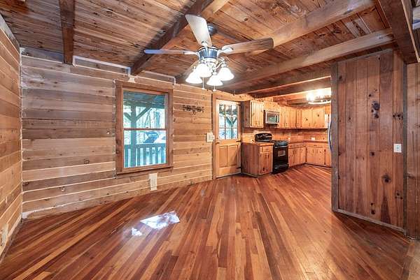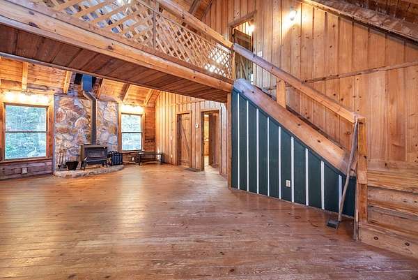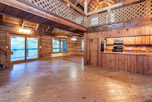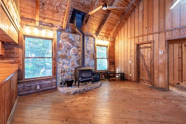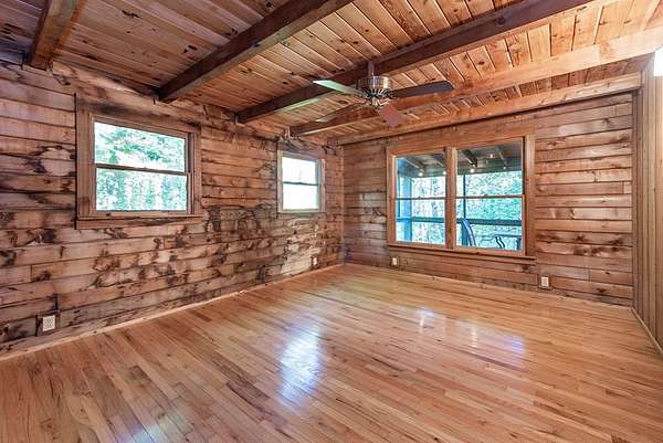 Rustic Mountain Cabin on 2.3 Acres | Burnt Mountain Estates This is your chance to own the rustic mountain cabin you've been dreaming of! Tucked away on 2.3 wooded acres including an additional lot, this 2 bedroom, 3 bath Log Cabin is located in the gated community of Burnt Mountain Estates, straddling the scenic Pickens and Dawson County line. Inside you will see the authentic log walls, open floor plan, and an abundance of natural light. The main level features a warm and welcoming great room, the kitchen with plenty of cabinets and counter space, dining area, and a spacious en-suite bedroom. From here, walk out onto the huge screened porch--perfect for relaxing, listening to nature, and taking in the peace and quiet of this beautiful mountain setting. Stay cozy year-round with a newer wood stove plus central heat. Upstairs, a large loft area offers flexibility for an office, reading nook, or guest space, along with a second bedroom and private bath. The full basement is a rare find in a cabin, complete with a finished full bath and plenty of room to use as a workshop, storage, or future living area. Recent updates and improvements make this home move-in ready--just bring your vision and love for mountain living. Whether you're looking for a primary home or weekend retreat, this one checks all the boxes.