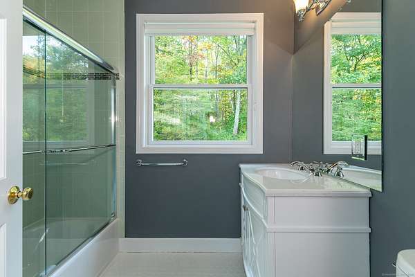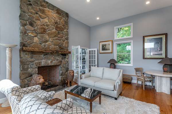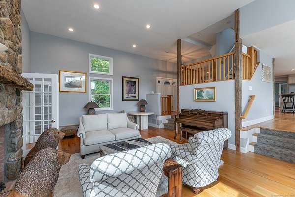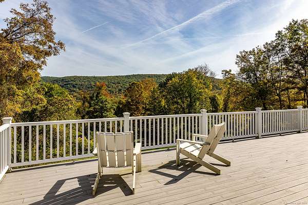 Escape to this mountaintop retreat with sweeping, unobstructed views located off one of the most desirable scenic roads in the Litchfield Hills. Set in complete privacy, this four-bedroom home offers a perfect blend of comfort and sophistication with an open-concept layout designed for both relaxation and entertaining. The chef's kitchen, featuring a central island, flows seamlessly into a cozy reading nook with fireplace, a screened porch, and a dining area that opens to an expansive deck overlooking the breathtaking vistas. The spacious living room, anchored by a striking fieldstone fireplace, also connects to the deck and includes a charming home office. Upstairs, the primary suite offers a private balcony, spa-like bath with soaking tub, and walk-in closet. An additional ensuite bedroom, two more bedrooms with a shared full bath, and convenient laundry complete the upper level. The walkout lower level provides versatile living space, currently used as a media room and gym, and includes a full bath. Located just minutes from the shops and restaurants of Kent's vibrant village center-and only two hours from New York City-this property is the ultimate country retreat.
