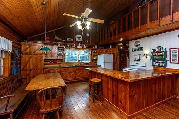 Welcome to 168 Ford Lane - where simplicity, serenity, and soul come together! Set alongside a quiet, peaceful lane on 5+ wooded acres, this warm and welcoming 2,205 square-foot cabin offers a rare blend of privacy, character, and connection to nature - all just a few minutes from the amenities of Nicholasville, yet only a 20-minute adventure to the banks of the Kentucky River. The main living space features an open format great room that is just teeming with cabin charm. With the stone fireplace as the centerpiece, enjoy gatherings in the living room with your loved ones while others are having dinner around the dining room table, while all still being together! This home features 2 bedrooms, one bath room with a separate powder room, and a spacious kitchen - all thoughtfully designed for comfort and easy living. Natural light, wood tones, and timeless cabin charm create an atmosphere that feels grounding and authentic - a place where mornings are slow, evenings are cozy, and life feels intentionally lived. Above it all, a 172 square-foot loft provides flexible space that adapts to your lifestyle. Whether used as a home office, creative studio, reading loft, or converted into a third bedroom, it offers privacy and inspiration with views that invite focus and calm. Outdoors, the fully fenced yard is ideal for pets, gardening, or simply enjoying open space in a serene setting. A detached 2.5-car garage that is supplied wit both 110 and 220 amp service provides ample room for vehicles, tools, recreational gear, or hobby storage - perfect for those who value both function and flexibility. Because this open format home is canopied by tall, mature trees, you will benefit from naturally cooler indoor temperatures during the summertime. 168 Ford Lane is a property that encourages you to slow down, breathe deeply, and reconnect - with nature, with purpose, and with what matters most.