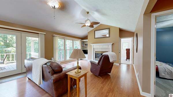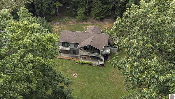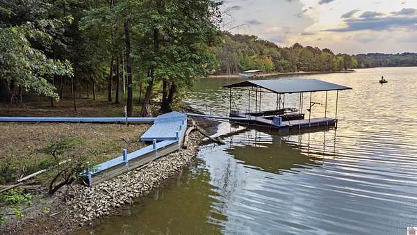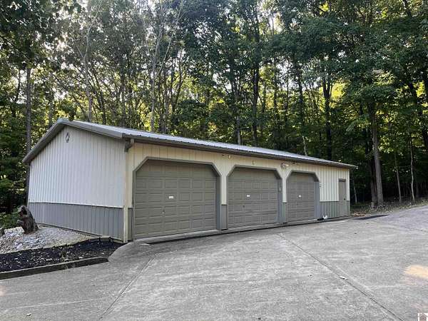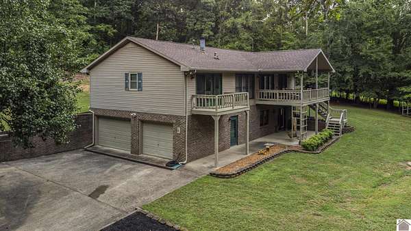 Welcome home to this 4 bdrm, 3 bath waterfront lake house situated on 1.66 acres w/a gentle slope to the 2-slip private boat dock in a peaceful cove on beautiful Lake Barkley. The textured, concrete drive is now lined w/lamp posts leading to the home. Amazing garage space w/an attached tandem, 3-car garage (sm workshop w/sink) PLUS a 30'X60' detached 3-car garage/shop for boats, trucks, jet skis & more! Step inside to a partial open concept, vaulted ceiling in living rm w/gas log fireplace, built-in bookshelf/cabinet & windows galore for great lake views. You'll enjoy entertaining, reading or just relaxing on the spacious balcony deck...OR hanging out on the patio below swinging or playing outdoor games. The primary suite has its own small balcony & spacious bathrm w/jetted tub & walk-in closet. All bdrms on main floor have new flooring. Daylight basement has the 4th bdrm, a game or family rm or office, built-in shelf & lots of storage. Just across from Prizer Point Marina & Resort.