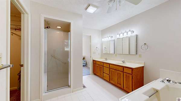 - Attic Fan, Battery, Ceiling Fan(s), Ceilings 9+ Feet, Circuit Breakers, Closet Light(s), Double Vanity, Garage Door Opener, Humidifier, Separate Shower, Smoke Alarm, Tray/Vaulted Ceiling, Walk-In Closet, Washer/Dryer Hookup