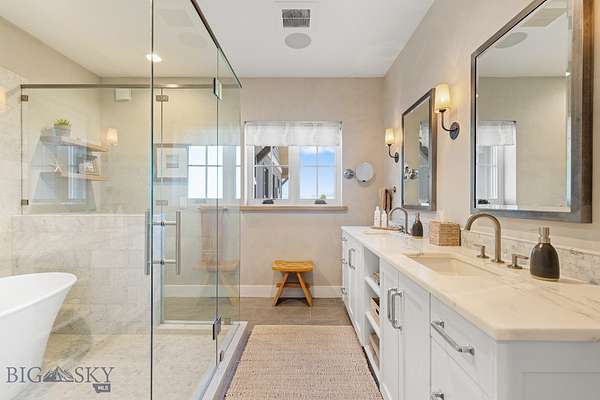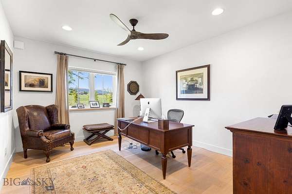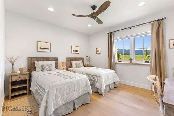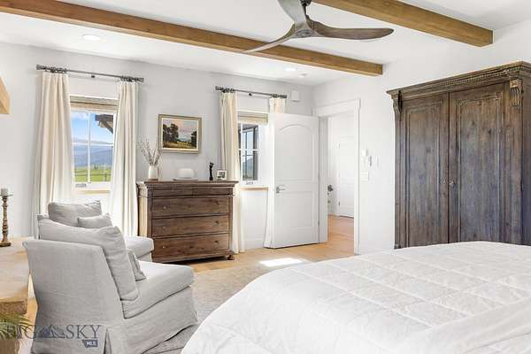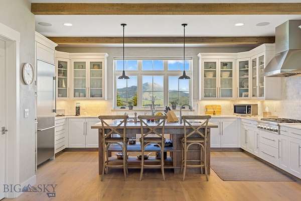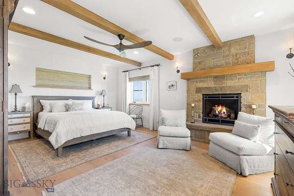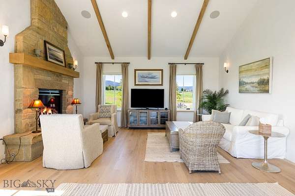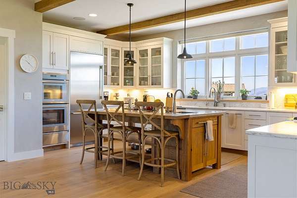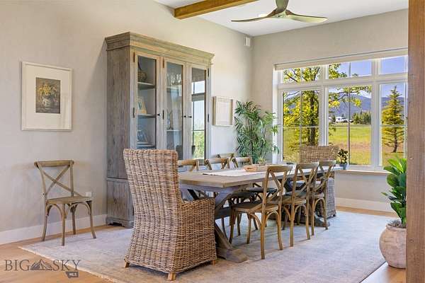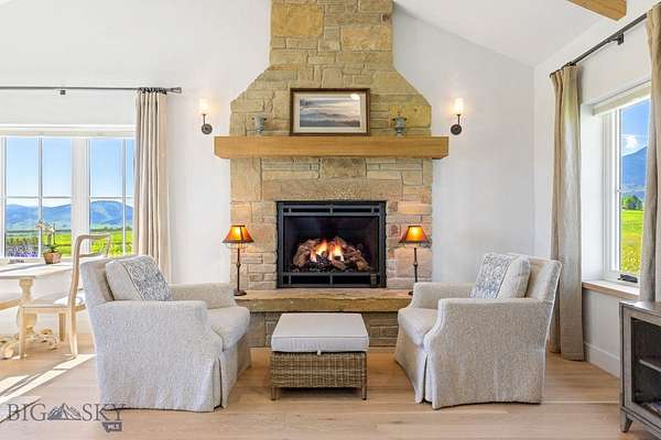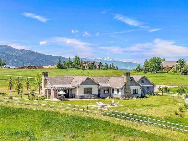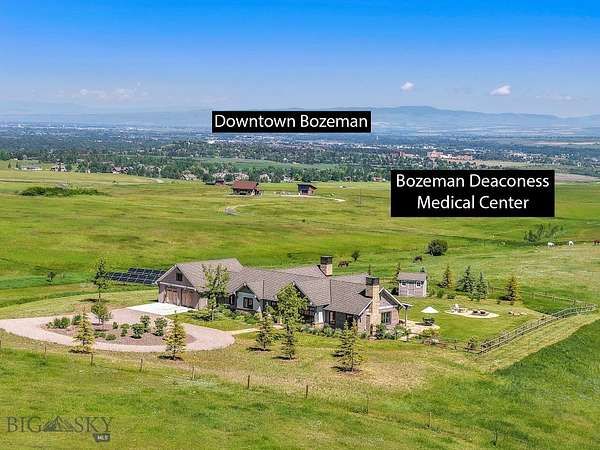 Welcome to 168 Hawthorn Lane, a rare offering that combines modern elegance, luxurious finishes, and the serenity of Montana living on 10 pristine acres. This location is prime, as the property is only a short 10-minute drive to bustling downtown Bozeman! Perfectly positioned to capture sweeping Bridger Mountain views, this stunning home offers effortless, single-level living designed for comfort, style, and connection to Bozeman's natural beauty. Built in 2020 with an emphasis on sustainability, the home features a 15kW solar array, a Lunos air exchange system, and low-VOC materials throughout-making it as environmentally conscious as it is beautiful. The entire home, including the garage, is equipped with radiant floor heat, ensuring cozy comfort in every season. The thoughtfully designed floorplan offers light-filled living spaces with an easy, elegant flow. At its heart is a chef's kitchen with beautiful marble countertops, a stainless steel prep island with seating for guests to gather, high-end appliances, and a pantry for all your culinary needs. The thoughtfully placed kitchen window offers mesmerizing views of the Bridger Mountains, making time spent in the kitchen feel inspired. The inviting dining room is perfectly sized for large family gatherings, while the open living area, anchored by an attractive rock gas fireplace, provides a warm and comfortable space to gather with friends and loved ones on chilly Montana evenings. Glass doors open to the covered patio and perfectly sized backyard, complete with a sitting area and firepit-an ideal place to unwind and take in the stunning views. The sizable primary suite is a true sanctuary, featuring its own rock gas fireplace and a cozy office nook for quiet reflection or productivity. The adjoining bathroom features a soaking tub thoughtfully placed within the spacious walk-in shower and dual vanities. Two additional well-appointed bedrooms and a large full bathroom offer plenty of space for family and guests, completing the home's thoughtful layout. And for music lovers, the home is equipped with a Sonos surround sound system, creating an immersive audio experience indoors and out. With 10 acres of room to roam, this property also allows for horses, and space to add a barn, shop, or ADU. All of this in Bozeman's highly sought-after southeast side-close to downtown yet surrounded by natural beauty. This is more than a home, it's a lifestyle-refined, relaxed, and uniquely yours.