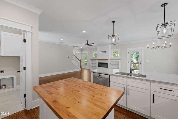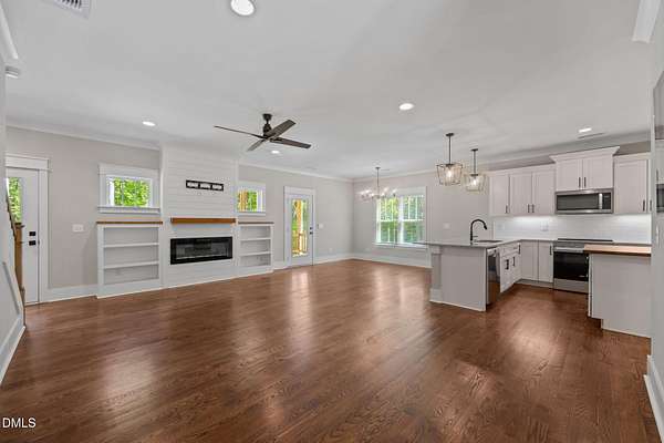 - Built-In Features, Ceiling Fan(s), Chandelier, Double Vanity, Granite Counters, Kitchen Island, Open Floorplan, Pantry, Primary Downstairs, Walk-In Closet(s), Walk-In Shower