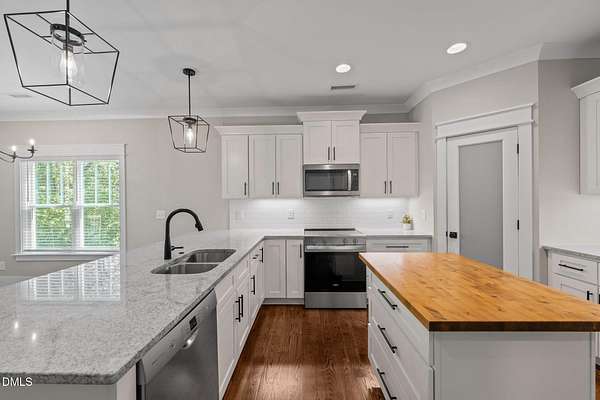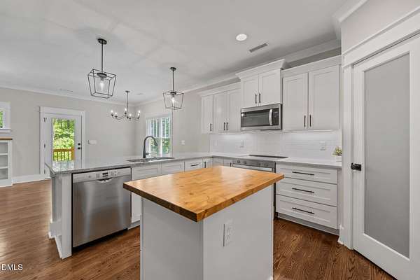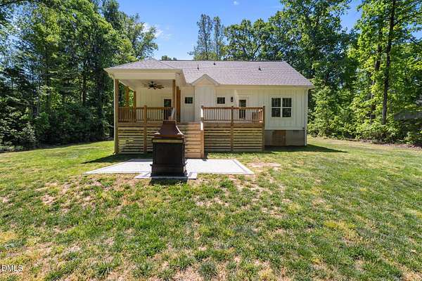 Built in 2023 on nearly 2 acres - This custom home in Summerfield delivers the rare combo everyone's chasing--almost-new construction, high-end finishes, and a peaceful and private wooded setting in a desirable neighborhood. From the moment you arrive, the inviting rocking chair front porch, split rail fence and beautifully maintained front yard set the tone--this is the kind of place that just feels like home. Inside, you'll find 4 bedrooms, 2.5 baths, and a flexible loft/office space. The main level features the primary suite with walk in closet. A barn door leads to the primary bathroom with tile flooring, quartz vanity top, double sinks, and walk-in tiled shower with glass door. First floor has true wide-plank oak hardwoods, cottage-style trim, and a stylish modern fireplace that anchors the living space. The kitchen shines with granite countertops, undercabinet lighting, stainless appliances (including a Bosch dishwasher), corner pantry with frosted glass door, tile backsplash, butcher block island, custom cabinets with soft-close drawers and an open layout built for entertaining or everyday living. Other extras include quartz vanity tops and tile floors in baths, shiplap accents, built-in shelving, crown molding, recessed lighting, powder room off entry, laundry with cabinets, 2'' blinds. Built with durability in mind, the home features cement siding--even the soffits--giving you long-term peace of mind with low maintenance. Out back, it only gets better--relax on the covered deck with fan or unwind on the stone patio overlooking a private, wooded backyard. Tidy 25x14' storage building with lighting and roll up garage door. Wooded lot extends far beyond the storage building. Fantastic location just 5 minutes to Greensboro National Golf Club, 13 minutes to Haw River State Park, 15 minutes to Bur-Mil Park, 10 minutes to Lake Brandt Marina, 10 minutes to Greensboro Day School. If you've been waiting for something that doesn't feel like every other listing... this is it!