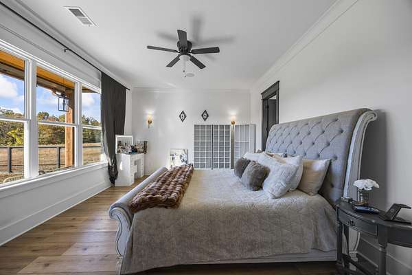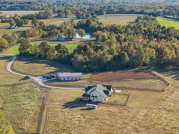 Exquisite Equestrian Estate - The Perfect Blend of Luxury & Country Living Welcome to your dream equestrian retreat just 4 miles from I-40 -- where refined living meets wide-open freedom. This stunning 5-bedroom, 4.5-bath, 2 large bonus rooms custom home was designed with both comfort and functionality in mind. The main level features a luxurious master suite and a private guest room, each with its own full bath, offering the perfect layout for family and guests alike. Step inside to an open-concept floor plan that seamlessly connects the gourmet kitchen, dining area, and great room -- ideal for entertaining or relaxing after a long day. With over 1,700 sq. ft. of covered porches, you'll enjoy endless views of rolling pastures, sunsets, and visiting wildlife. Equestrians will appreciate the 100x200 sand arena, perfect for training, reining, or jumping. The 8-stall barn (expandable to 12) offers tack and feed rooms, wash bay, and wide aisles -- ready for your horses or easily convertible for additional uses. Multiple cross-fenced pastures and miles of scenic trails make this property a rider's paradise. The hunting woods add even more recreational opportunity and privacy. Conveniently located just minutes from the interstate, this estate offers the rare combination of accessibility and seclusion -- an equestrian farm that truly has it all.
