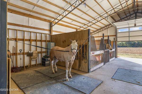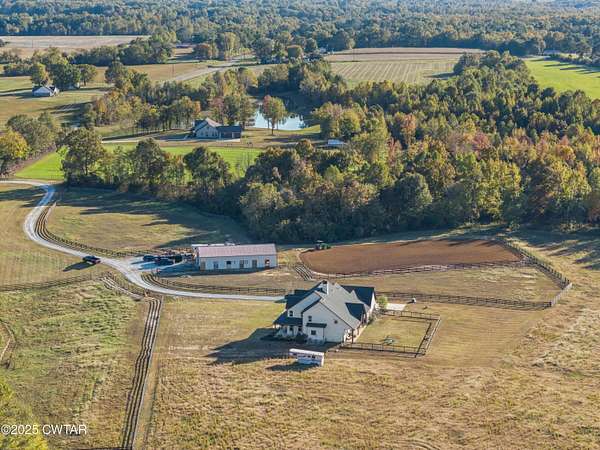Exquisite Equestrian Estate - The Perfect Blend of Luxury & Country Living Welcome to your dream equestrian retreat just 4 miles from I-40 -- where refined living meets wide-open freedom. This stunning 5-bedroom, 4.5-bath, 2 large bonus rooms custom home was designed with both comfort and functionality in mind. The main level features a luxurious master suite and a private guest room, each with its own full bath, offering the perfect layout for family and guests alike. Step inside to an open-concept floor plan that seamlessly connects the gourmet kitchen, dining area, and great room -- ideal for entertaining or relaxing after a long day. With over 1,700 sq. ft. of covered porches, you'll enjoy endless views of rolling pastures, sunsets, and visiting wildlife. Equestrians will appreciate the 100x200 sand arena, perfect for training, reining, or jumping. The 8-stall barn (expandable to 12) offers tack and feed rooms, wash bay, and wide aisles -- ready for your horses or easily convertible for additional uses. Multiple cross-fenced pastures and miles of scenic trails make this property a rider's paradise. The hunting woods add even more recreational opportunity and privacy. Conveniently located just minutes from the interstate, this estate offers the rare combination of accessibility and seclusion -- an equestrian farm that truly has it all.