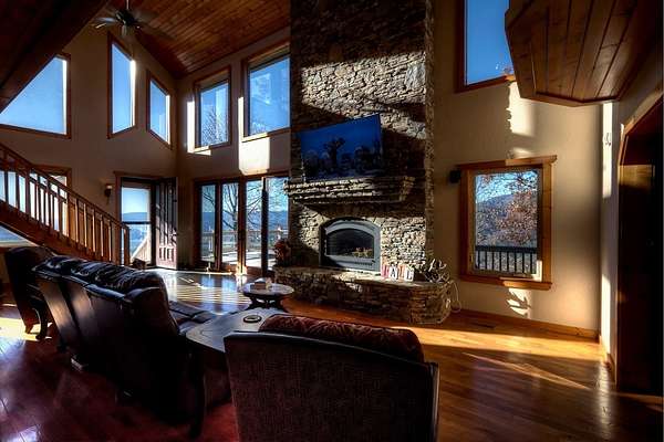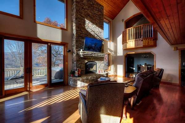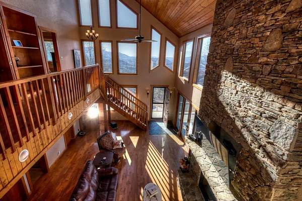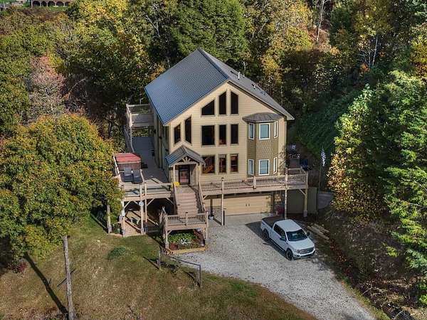 Welcome to Grand View Falls, where this custom-built residence captures breathtaking, long-range views stretching from the Snowbird Mountains into Tennessee. The two-story main living room sets the tone with soaring ceilings, a dramatic wall of windows, and an elegant fireplace that anchors the space with warmth and grandeur. The open, vaulted layout flows throughout the home, complemented by abundant storage and an executive master suite designed for comfort and space. On the lower level, an expansive additional great room with a stone fireplace offers an inviting setting for entertaining or relaxed evenings. A spacious two-car garage or workshop provides ample room for projects and gear. Recent upgrades-including a new roof and new kitchen appliances-bring peace of mind, while the hot tub, grill, and sauna add a touch of resort-style living. Outdoor living shines here as well, with generous deck and patio spaces that make the most of the warm season. The community offers trails, common areas, and pickleball courts, and the surrounding region is rich with opportunities for whitewater, hiking, fishing, and cycling. Listed for $42k below July appraisal-