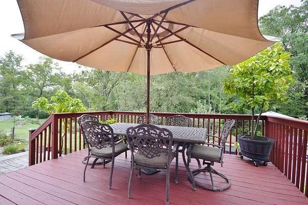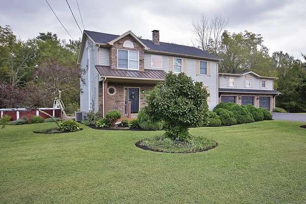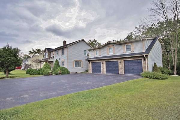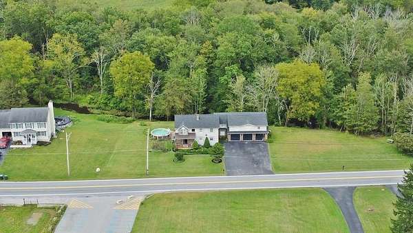 This is one of the Kind property in the Minisink School District . This Beautiful Colonial is seated on about 6.1 level acres of land all landscaped with a stream running through the back of the property allowing for fishing and relaxation either from a fantastic patio or the two decks and above ground pool to provide plenty of enjoyment of its natural surroundings.including fishing and gardening. Features include : 4/5 Bedrooms, with extra room for your family. Custom fireplace with Mantel in the Living Room, 3 Full Bathrooms and one Lavatory. Master Bedroom, Master Full Bathroom, Den/office, Laundry Room,,Hardwood Floors through out. The large Playroom has a full bathroom and offer unlimited possibilities.This home has many upgrades including a beautiful designed Custom kitchen with unique details.;crown moldings ,custom arches,door headers and wood paneling., imported porcelain;Central Vacuum,Water purification system,two furnaces,2 car garage.and more. Additional Information: Amenities:Pedestal Sink,HeatingFuel:Oil Above Ground,ParkingFeatures:2 Car Attached,