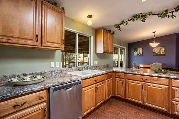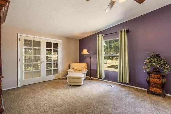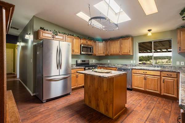 In a quiet and tranquil neighborhood with gorgeous views of the hills surrounding it, this spacious home provides a durable metal roof, 4bd, 3bths with 3 walk-in and 4 extra closets! The master suite is a huge 16.9x19.11 with French doors heading out to an enormous, covered deck measuring 16x40! The master bath includes a separate shower and jetted tub. A work bench and storage shelves are plenty in the generous 3 car garage with over 1,000sf. This home possesses tape and textured walls, aiding with energy efficiency. The kitchen has plenty of counter space including a 10ft peninsula and an island with an abundance of cabinets to add to your storage needs. Entertaining is effortless in this expansive home that provides upgrades throughout!