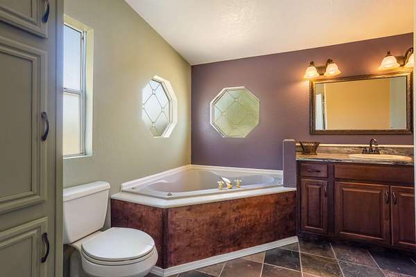- Bathtub, Ceiling Fans, Dual Sinks, Entrance Foyer, Jetted Tub, Kitchen Island, Main Level Primary, Pantry, Separate Shower, Skylights, Soaking Tub, Walk in Closets