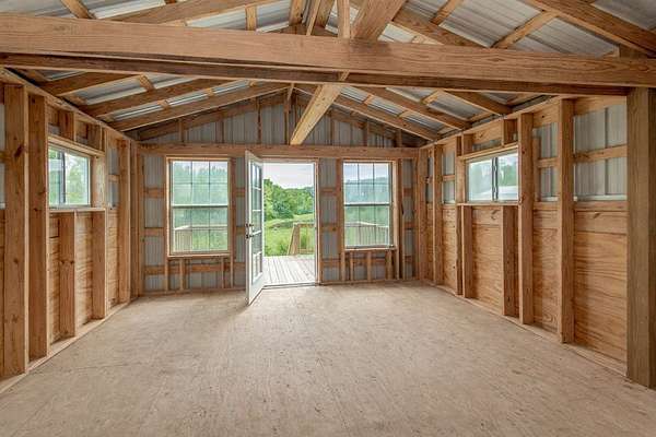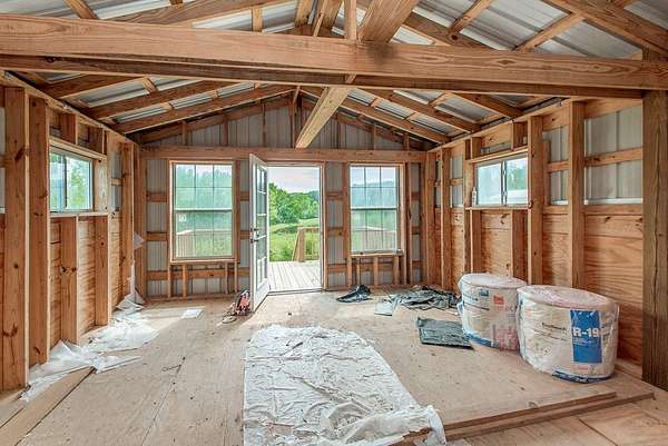Escape the hustle and bustle and discover your own private retreat on nearly 25 acres featuring a pond, open space, and endless possibilities! This unique property includes two metal buildings offering flexibility for personal use or investment. The first building features a finished studio apartment with kitchen, full bath, and attached covered RV parking with hookup, perfect for full-time living, weekend getaways, or guests. The second building is framed and ready for completion, with designated kitchen and bathroom space plus an upstairs bedroom with private balcony overlooking the property. Ideal for a homestead, hunting or fishing retreat, weekend escape, or future income-producing opportunity. Buildings share a well with separate septic systems and electric service. Items remain in both buildings, and some photos have been virtually cleaned to show potential. If you've been searching for that hidden gem, you've found it! Call today!