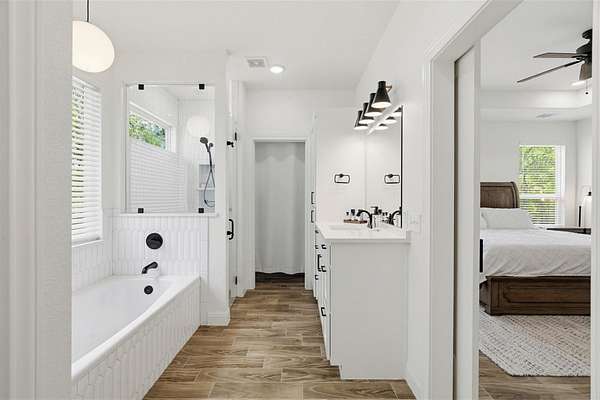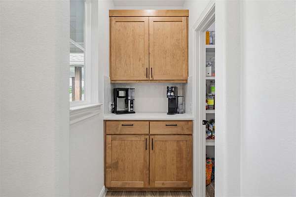 - Beamed Ceilings, Breakfast Bar, Built-In Features, Ceiling Fan(s), Ceiling-High, Ceiling-Vaulted, Double Vanity, Dry Bar, Eat-In Kitchen, Entrance Foyer, Kitchen Island, Open Floorplan, Pantry, Quartz Counters, Recessed Lighting, Two Primary Closets, Walk-In Closet(s)