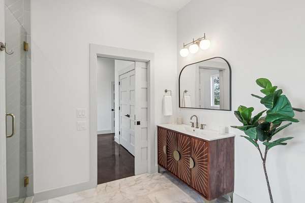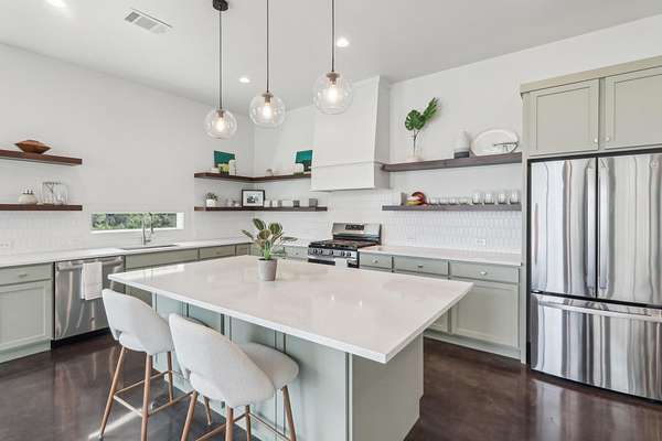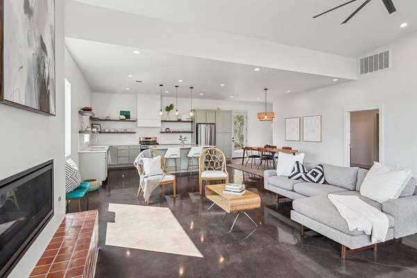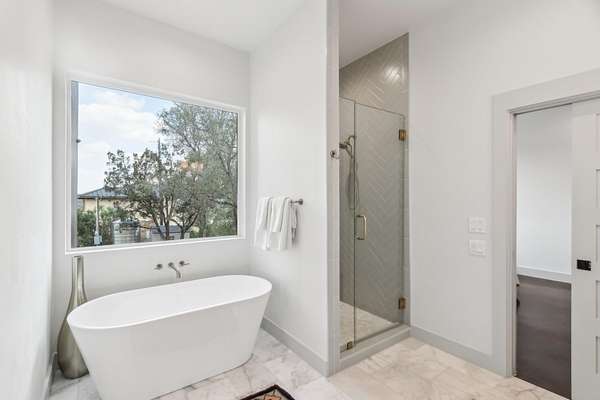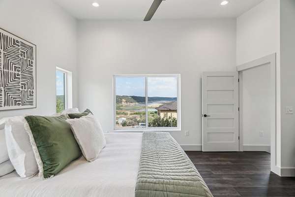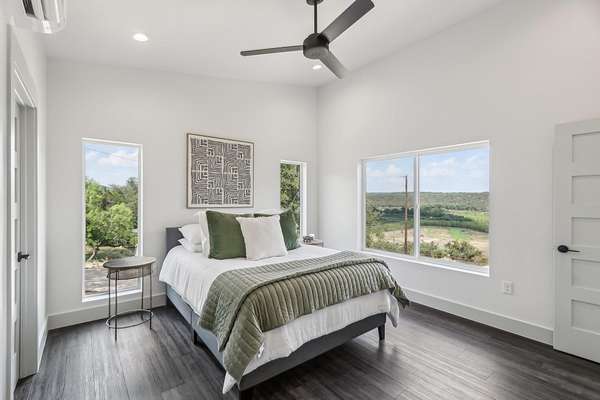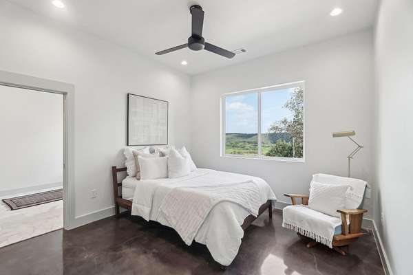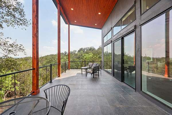 Experience refined Hill Country living in this modern lakefront estate, gracefully situated on 3.35 private acres with sweeping panoramic views of Lake Travis and the surrounding hills. This newly constructed custom stucco residence offers 2,191 square feet of thoughtfully designed living space, featuring three spacious bedrooms and three full baths. The open concept main level is a study in sophistication, with soaring vaulted ceilings, expansive picture windows that frame the serene natural landscape, and a chef-inspired kitchen appointed with a center island, breakfast bar, and premium finishes. Concrete and marble flooring flow seamlessly throughout, elevating the home's contemporary aesthetic while complementing its high ceilings and curated designer touches. The secluded primary suite is a true retreat, offering a generous walk-in closet and a spa-like bath with an oversized walk-in shower. Outdoor living is equally impressive, with covered patios that invite relaxation and a private dock tucked just beyond a tree-lined cove--perfect for lakefront adventures. With no HOA, low property taxes, and ample room to expand or entertain, this exceptional property is perfectly suited for a luxurious full-time residence or an upscale weekend getaway. Located within Marble Falls ISD and under an hour from Austin, it offers both tranquility and convenience in one breathtaking package.