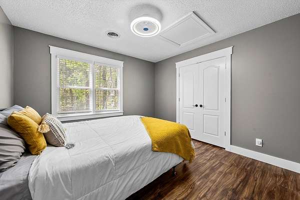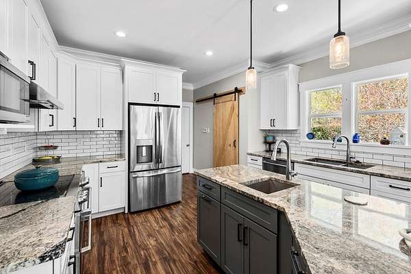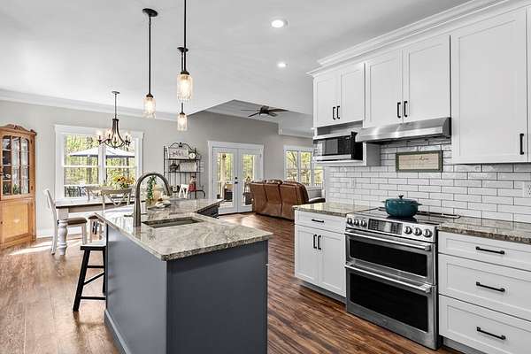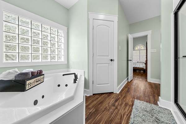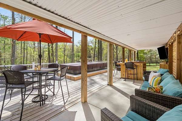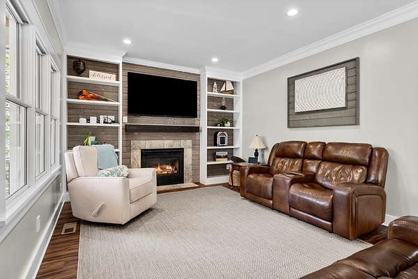 Exceptional 4-bedroom residence featuring a sought-after first-floor primary suite, perfectly positioned on a private homesite with serene pond views. Thoughtfully updated and truly move-in ready, this home offers a seamless blend of refined comfort and modern enhancements. The beautifully appointed eat-in kitchen showcases new granite countertops, updated cabinetry, and timeless finishes designed for both everyday living and entertaining. The main living area is filled with natural light and anchored by peaceful pond views, flowing effortlessly to a screened-in porch for year-round enjoyment. Upstairs, three additional bedrooms await and are complemented by a spacious flex room—ideal for a private office, home gym, media space, or optional fifth guest room. Outdoor living is unmatched, featuring a swim spa and expansive upper and lower decks designed for entertaining in all seasons. Underneath the deck is the walk in crawlspace and private storage. The private pond setting creates a rare and picturesque backdrop, offering both relaxation and exclusivity in the Mill Quarter Neighborhood. A unique opportunity to own a beautifully updated home with premium lifestyle.