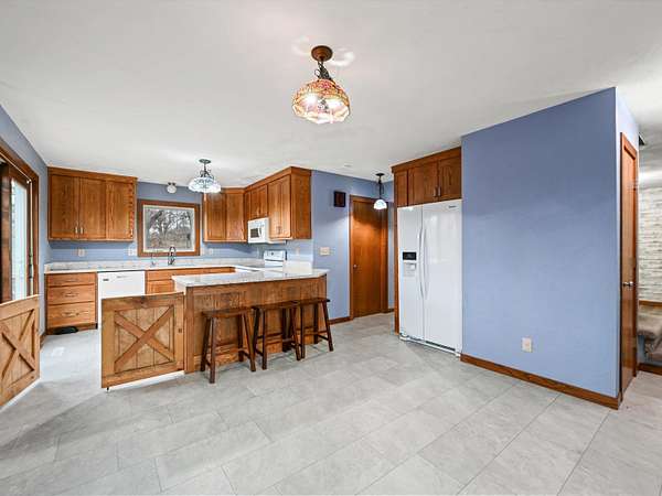 This country home on 2.7 acres has been completely updated, and is just 10 minutes to John Deere. There is a large workshop / capped garden garage under the 2 car garage. This 4 BR country house is ready to go! In 2022 there was a geothermal heating and cooling system installed which included a furnace, air conditioner and 2 new water heaters, also a drain tile system was installed, all light fixtures, washer & dryer, and a fence along the highway. Before the sellers moved in the following items were updated in 2020: Shingles, siding, windows, custom cabinets, countertops, refrigerator, stove, oven, microwave oven, dishwasher, all flooring, garage door and 5 exterior fire doors