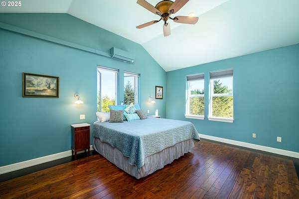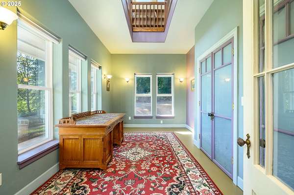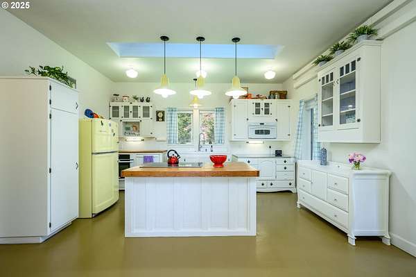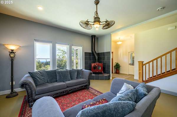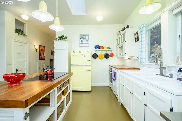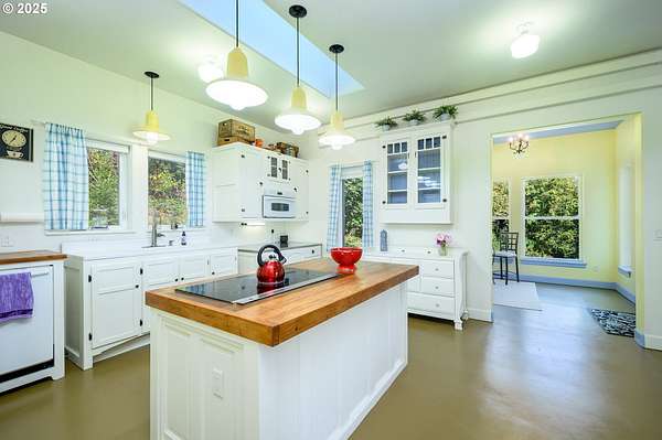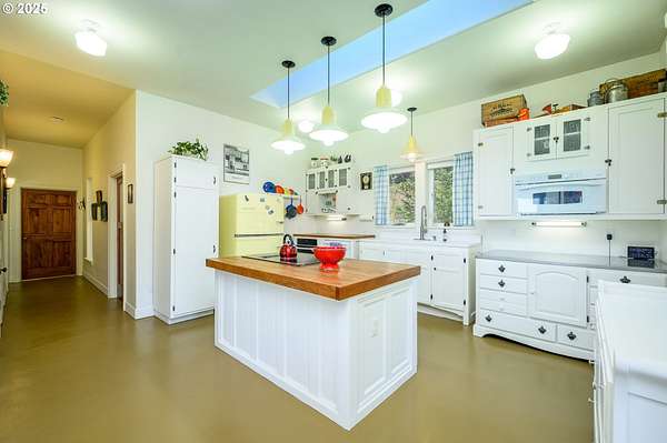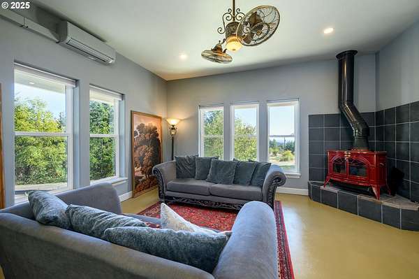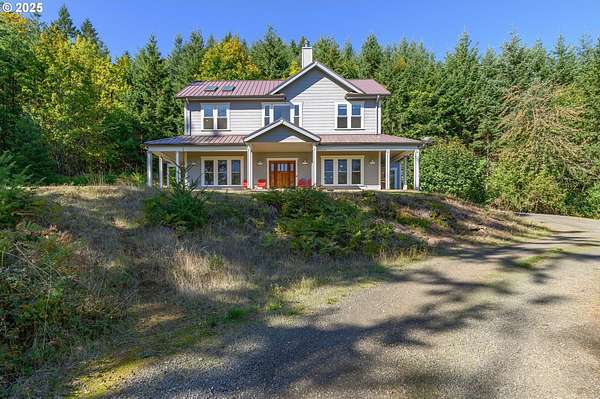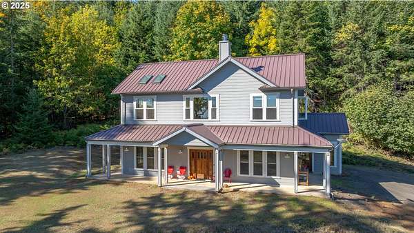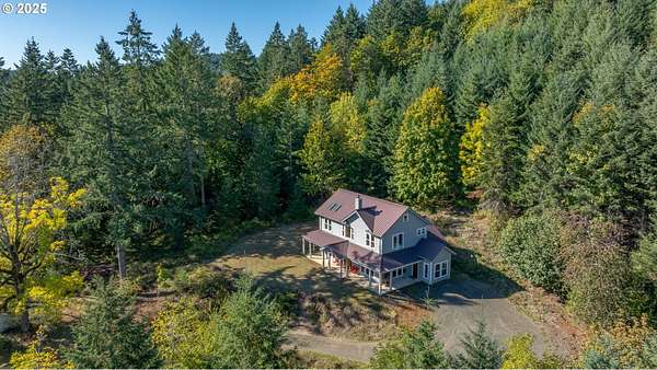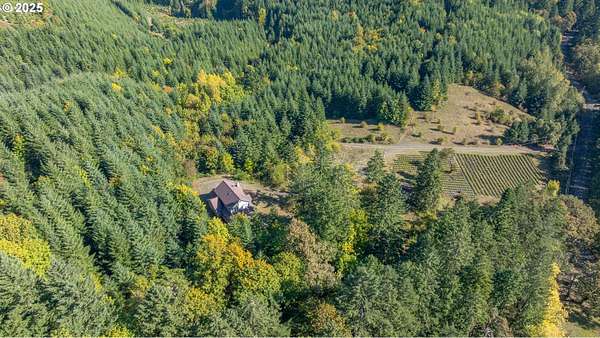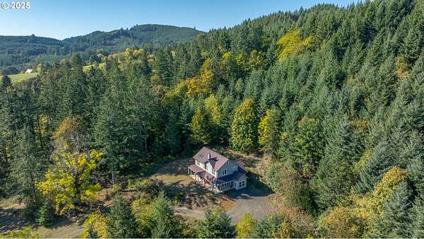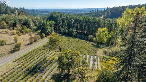 A truly one-of-a-kind home on expansive private acreage. This classic farmhouse blends carefully curated antique pieces with modern convenience. The kitchen boasts a custom island made of doors from the original homestead and barn and is topped with a Thermador induction range and pop up exhaust. Other appliances include a Bosch dishwasher, Electrolux oven and a retro styled, Big Chill fridge. There is even a 2nd oven, GE Advantium 220v, which cooks faster than a traditional oven and is a microwave. From the dual headed fan to the enameled, cast-iron wood stove with griddle cooktop, the living room is the essence of cozy comfort. Claim your favorite seat and watch the seasons change beyond the generous windows. The office shares the living room's gorgeous view of the valley, but unique to this room the open ceiling provides a glimpse of the library above. The closet is proportioned to accommodate horizontal file cabinets and includes a dual outlet for additional office equipment. A striking wood staircase delivers you to a panoramic view of the distant Cascades featuring Mt Jefferson. The owner's suite features soaring ceilings, two closets (one walk-in), and an attached bathroom complete with an antique soaking tub and a walk-in tiled shower. The 2nd floor continues with thoughtful touches such as a centrally located linen closet, oversized washer and dryer, a sunny guest bedroom, and entrance to the library. The property benefits from tax deferrals for both forestry and agriculture made up of 25 acres of established Doug Fir and a lavender field. Future owners might consider other crops such as grapes (hobby vineyard), hazelnuts, or a Christmas tree farm to name a few. Buyer to perform due diligence.