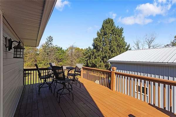 Situated on just over two acres, this 3 bedroom, 3 bathroom ranch style home is sure to wow you. Walk through the front door to a large living room with wood burning fireplace, vinyl plank flooring and access to the large deck. The formal dining room is right off the living room and looks into the living room. The kitchen features ample cabinet space, granite countertops, eat-in area and laundry, all appliances stay! The three bedrooms are on the main level with the primary bedroom featuring an en-suite bathroom. Downstairs you will find a large finished walkout basement. Features of the basement include a full bathroom, partially finished second kitchen, wood-burning fireplace within the extra large living space, single car garage and storage room. Property features a 30x24 metal outbuilding with 12-foot garage doors, mini split for comfort during harsh weather months and tons of electrical outlets. Large concrete patio area from the walkout basement perfect for entertaining or relaxing with the sounds of nature in the background.