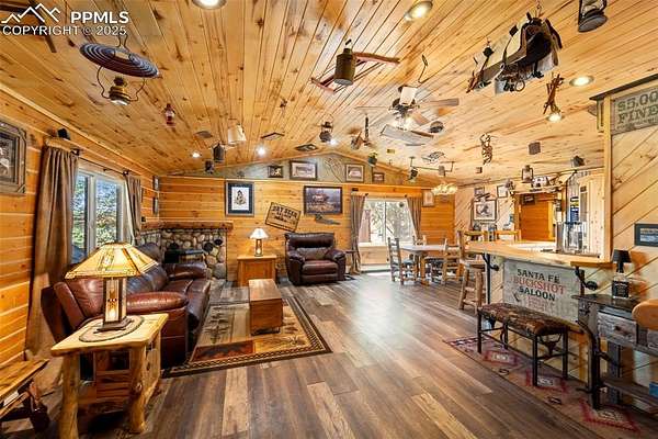 Step into a one-of-a-kind Colorado log cabin retreat just minutes from downtown Salida. This character-rich 3-bedroom, 2-bathroom home sits on just over 2 private acres, offering mountain views, peace, and endless potential. Inside, you'll find nearly 1,600 square feet of inviting living space filled with antique charm and timeless detail-perfect for those who appreciate craftsmanship and character. This home also has newer windows and sliders put in within the last 5 years. The property is fully equipped with a detached 3-car garage, two versatile sheds, a workshop, and a 941-square-foot pole barn, ideal for hobbies or storage. From the cozy interior touches to the expansive outdoor functionality, this home blends the best of rustic comfort and practicality. Whether you're seeking a full-time residence, weekend escape, or unique investment, this property delivers rare charm, unmatched setting, and versatility that's hard to find. This is not just a home-it's an experience. Don't miss your chance to own a truly unique piece of Salida.