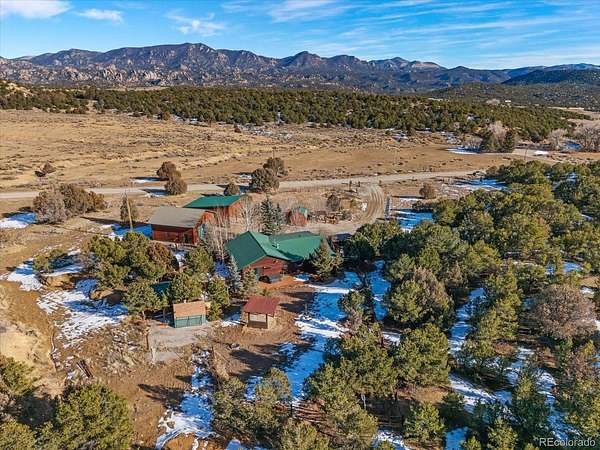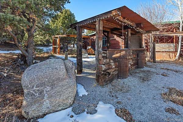 Tucked into a natural pocket of trees on 2.08 acres, this single level D log home offers privacy, shade, and a calm sense of separation without feeling remote. Mature evergreens and aspens frame the home and outdoor spaces, creating a setting that feels established and intentional.