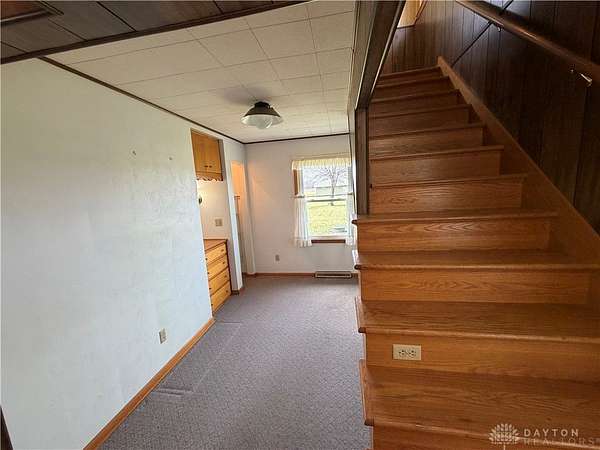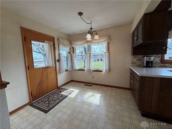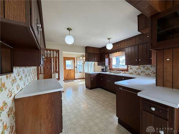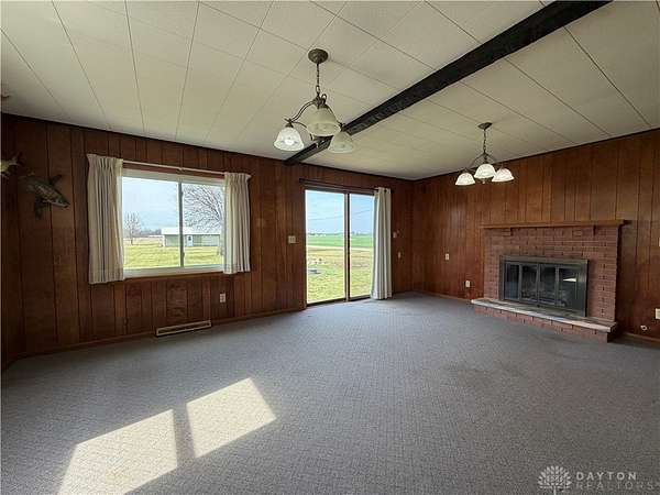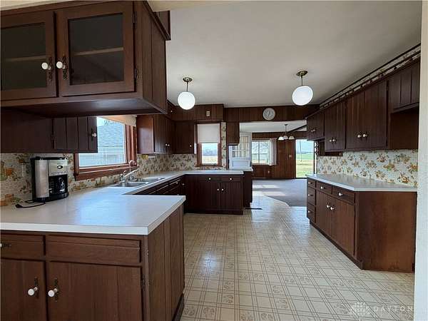 Discover rural living at this charming Brookville residence, situated on a generous 2.35-acres including 3 parcels: L53 02902 0040, L53 02902 0048, L53 02902 0056 This home offers a tranquil retreat with ample outdoor space and functional outbuildings, providing a unique blend of comfort and country. Step inside to find a spacious kitchen, complete with warm cabinetry, ample counter space, a convenient pass-through, and abundant natural light, making it ideal for culinary endeavors and everyday living. The living area features a brick fireplace and sliding glass doors that seamlessly connect to the outdoor surroundings. Retreat to bedrooms offering hardwood flooring or cozy carpet, ensuring a peaceful and private space. The charming bathroom presents a touch of vintage elegance with its pink tile and retro pedestal sink. This home features an unfinished basement with essential utility systems and potential for customization, offering additional space for future development. Outside, a detached garage and metal-roofed barn provide versatile options for storage or various needs on this spacious property. Enjoy the tranquility of open green spaces and mature trees, creating a picturesque setting for a fulfilling lifestyle. Septic tank pumped 10/25. All information is gathered from the seller and Montgomery County Auditor website. Information is not guaranteed or warranted. Verify all information and rely on your inspections.