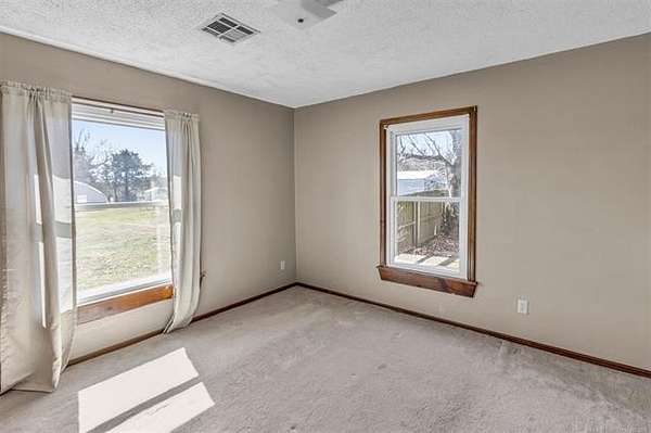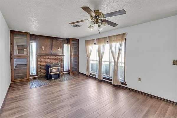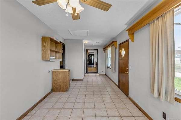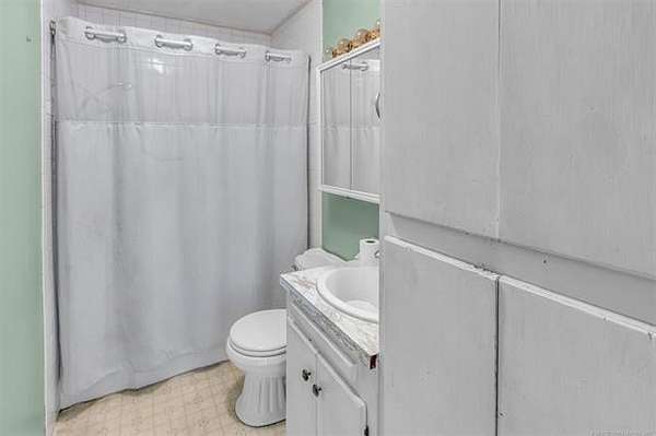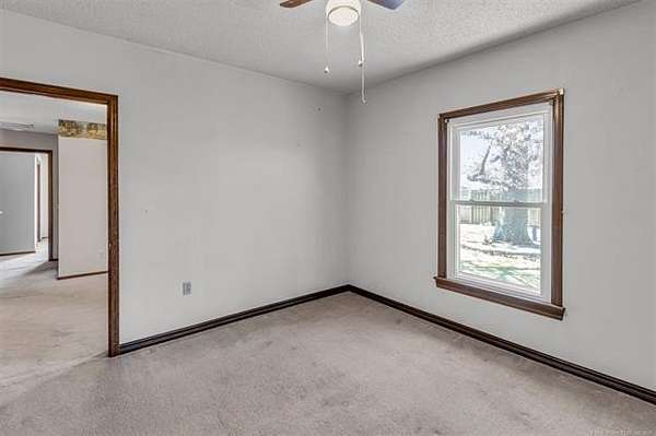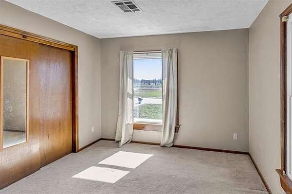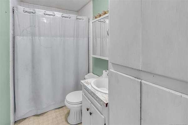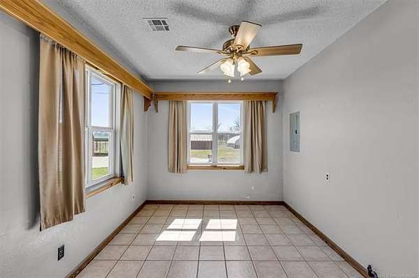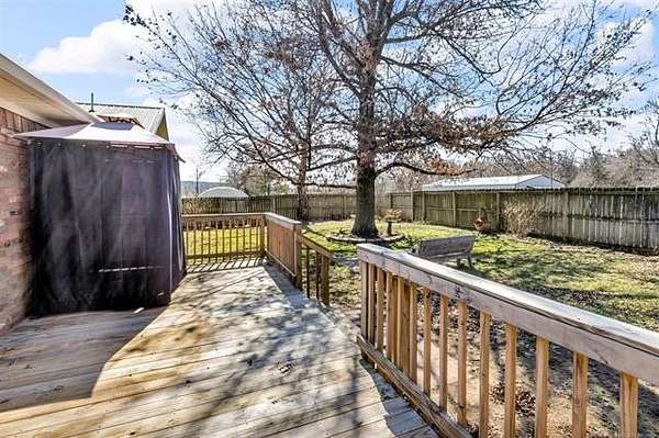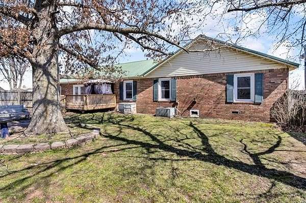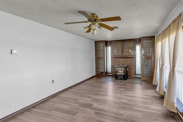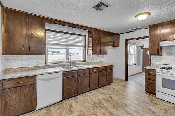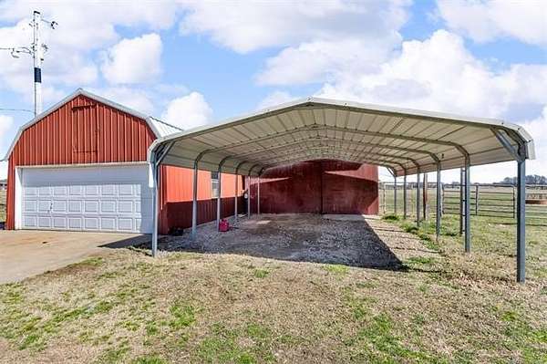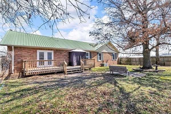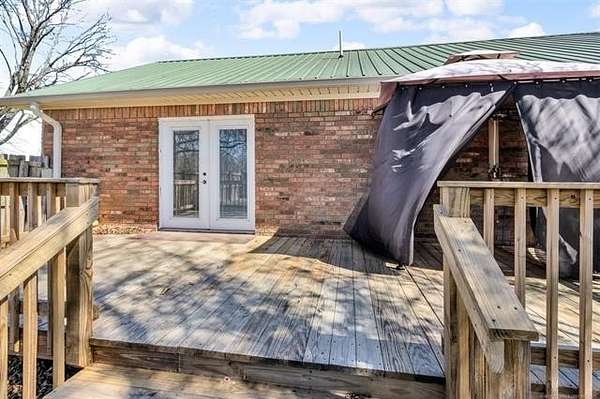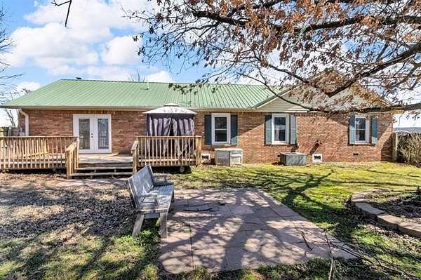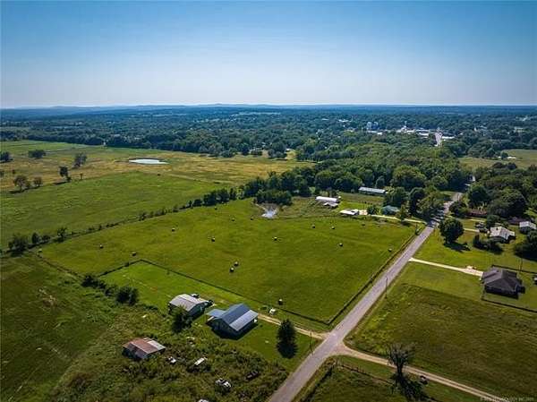 Situated on 9 acres on the outskirts of Westville, Oklahoma, this 3-bedroom, 2-bathroom brick home offers 1,675 square feet of comfortable living space with recent updates, including new flooring and a durable metal roof. The spacious kitchen features classic wood cabinetry, a subway tile backsplash, and ample counter space, while the inviting living room showcases a brick fireplace with built-in cabinetry and large windows for plenty of natural light. The fully fenced and cross-fenced pasture is ideal for livestock, complemented by a barn, corral, multiple storage sheds, and a detached metal garage. A large solid-front greenhouse provides the perfect space for year-round gardening. Additional features are a storm shelter and both well and rural water. This property offers the perfect balance of country charm and functionality, making it an excellent opportunity for those seeking a rural lifestyle with modern conveniences.
