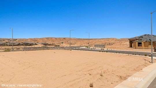 This quarter acre lot is located in the exclusive, Mohave Ridge subdivision North of I-15. Mohave Ridge is a 19 home community positioned high above Mesquite and surrounded by natural desert beauty. Adjacent to the Lincoln County boarder, this brand-new subdivision offers wide open spaces, gorgeous mountain views and direct access to miles and miles of trails. At Mohave Ridge you are sure to find stunning scenery, spacious home sites, beautifully landscaped common areas and a community dedicated to timeless designs, traditional craftsmanship with a modern flair and exceptional construction quality. View Point Contractors offers 2 x 6 exterior framed walls, R-50 attic insulation, paver exterior surfaces, epoxy coated garage floors and exceptional interior finishes. The minimum square footage on perimeter home sites is 2,300 and the minimum square footage for interior home sites is 2,100. All homes must have at least a 3-car garage. Vertical construction must start within 6 months of closing on the lot. Corner home site. Owner/agent.
