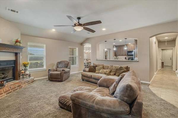 Step inside to an inviting open layout boasting generous living spaces, a dedicated movie room perfect for cozy nights in, and a game room that makes hosting friends and family effortless. The kitchen and common areas flow seamlessly, offering beautiful views of your expansive land.