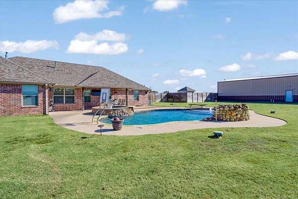 Outside is your personal oasis. Enjoy warm Texas days by the sparkling pool, ideal for relaxing, gathering, or playing. For hobbyists, business owners, or those needing serious storage, this property includes a massive shop plus an additional garage, giving you ample room for equipment, vehicles, and projects.